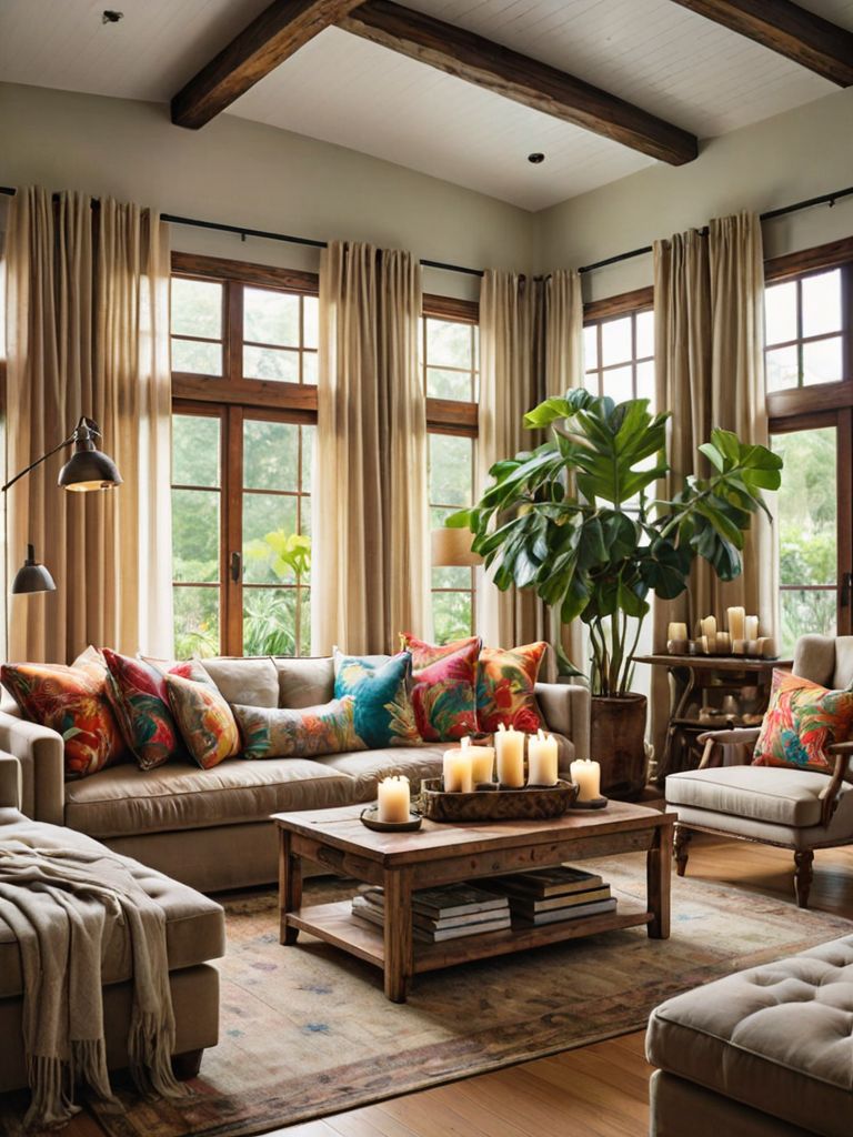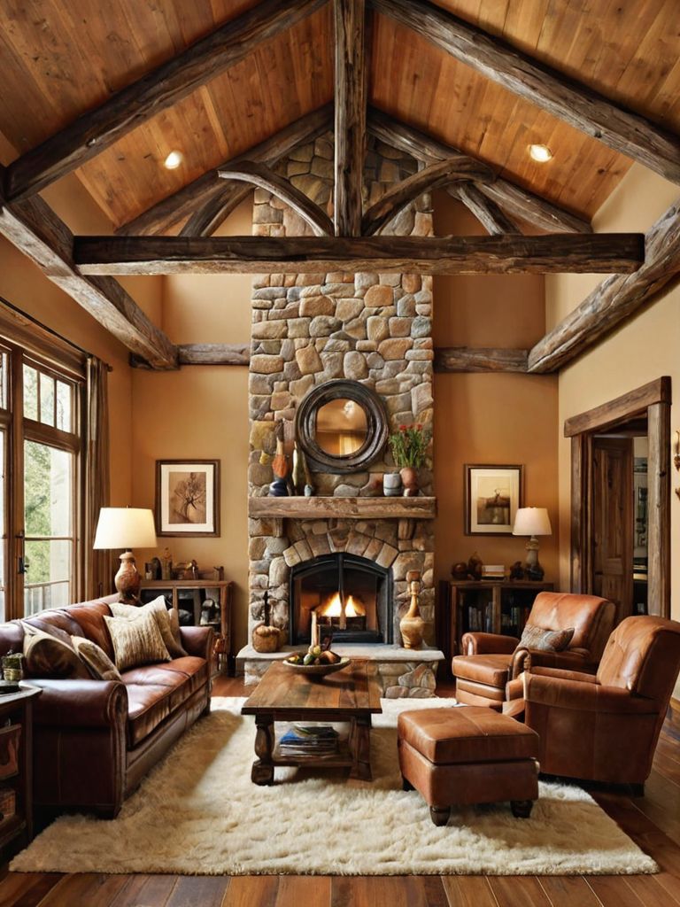 Rustic Elegance: Transform your living space into a cozy retreat with this home decorating idea. Embrace the charm of exposed wooden beams and natural stone accents, complemented by warm earth tones and luxurious textures. Incorporate vintage-inspired furniture and decor pieces, such as a distressed leather sofa and a reclaimed wood coffee table, for a perfect blend of comfort and sophistication.