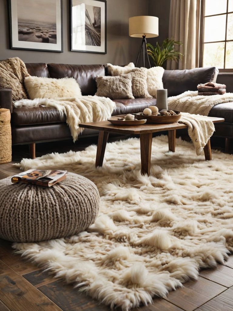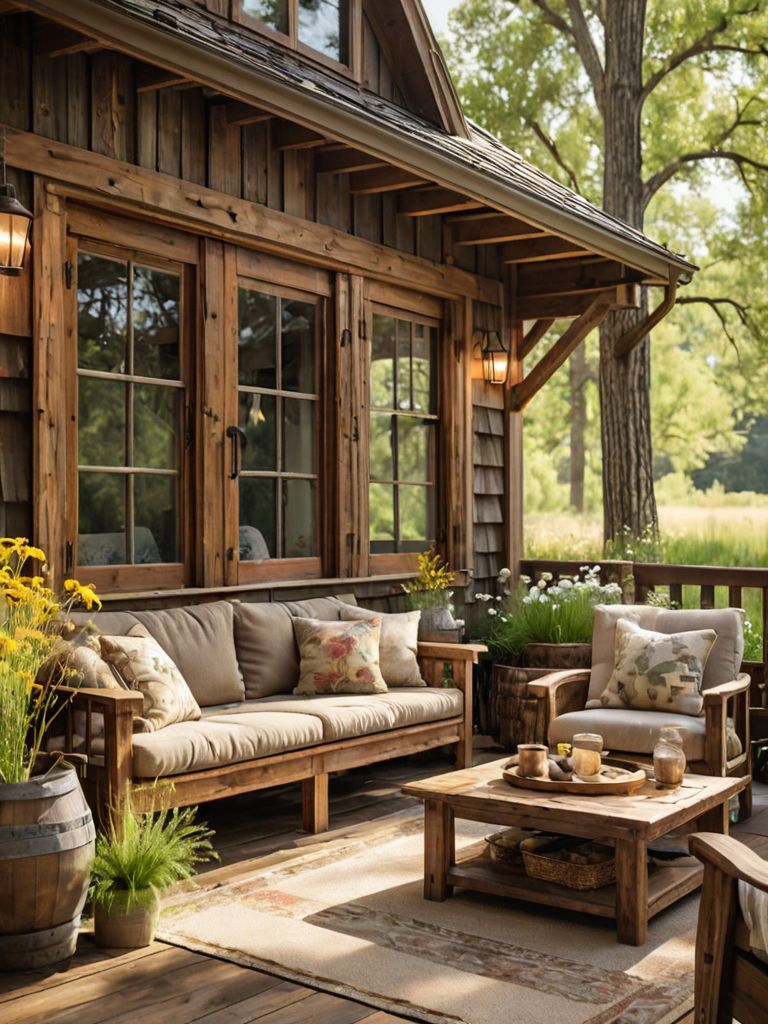 Distressed leather sofa, Reclaimed wood coffee table, Vintage-inspired furniture, Luxurious textures, Warm earth tonesDescription