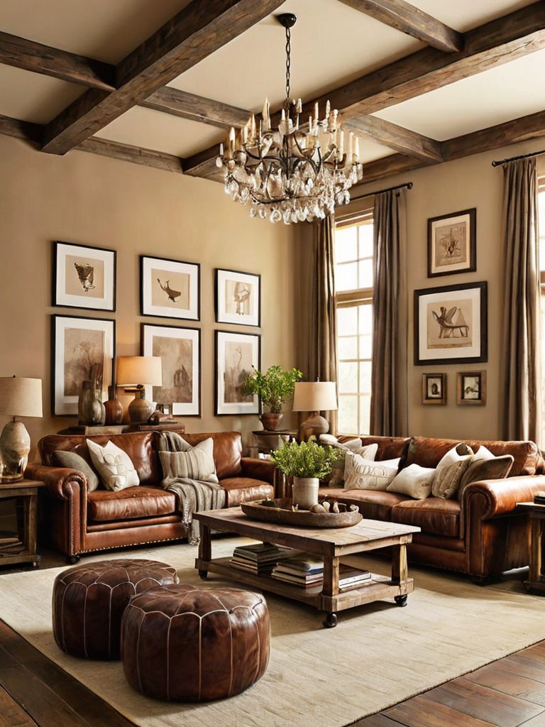 Rustic Kitchen: Create a warm and inviting atmosphere with a rustic kitchen design. Choose natural elements like reclaimed wood and stone for the flooring and countertops, complemented by vintage-inspired lighting fixtures. Add a touch of elegance with a farmhouse sink and open shelving to showcase your collection of antique dishes and cookware.