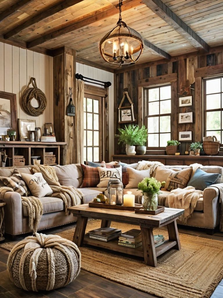 Furniture set, Statement art pieces, Plush textures, Indoor plants, Neutral color paletteDescription