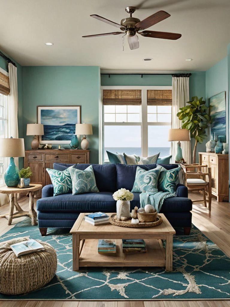 Palm Oasis: Create an exotic and serene retreat in your own home with a palm-inspired theme. Paint the walls a tranquil shade of light green, complemented by bamboo blinds and a tropical leaf-patterned rug. Complete the look with wicker furniture, plush cushions in shades of palm green and sandy beige, and strategically placed potted palms for a truly tropical escape.