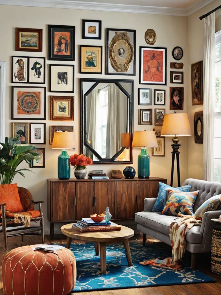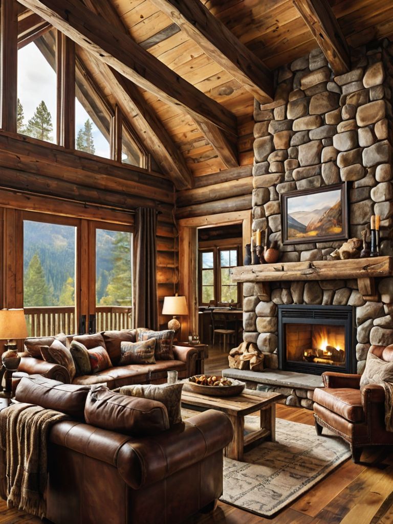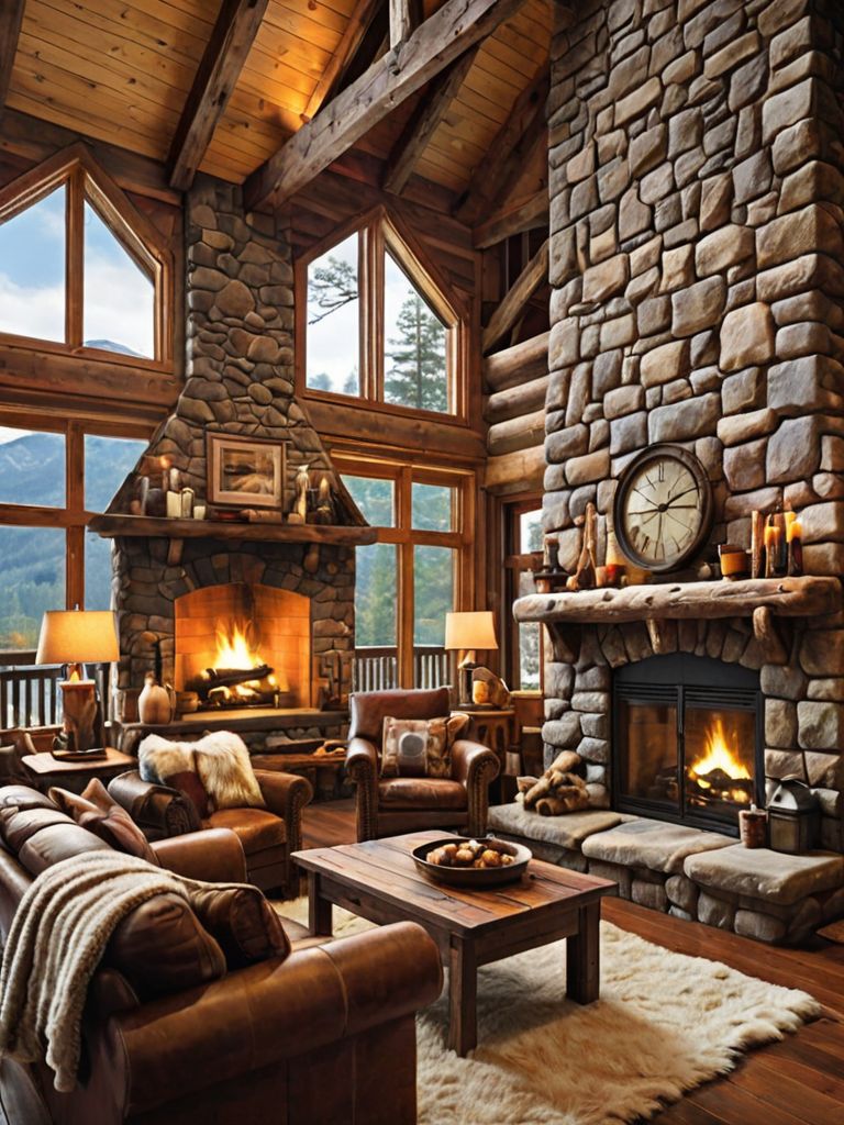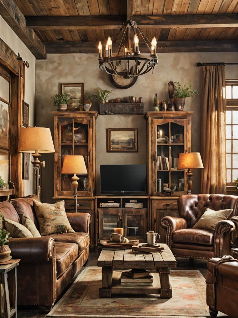 Rustic Retreat: Create a cozy cabin aesthetic in your living room by incorporating natural elements such as reclaimed wood coffee tables, faux fur throws, and vintage lanterns. Enhance the cozy atmosphere with warm earthy tones, such as deep browns and forest greens, and accentuate the walls with a wood paneling feature. Complete the rustic retreat with a roaring fireplace and a collection of vintage books and antiques on display.