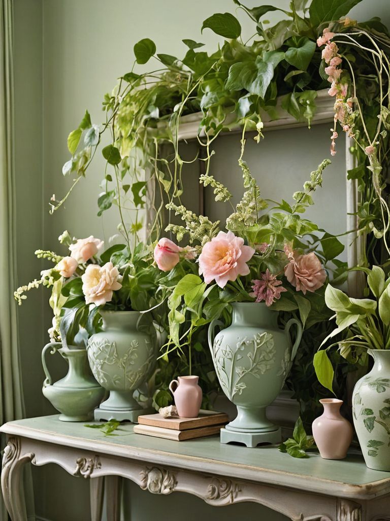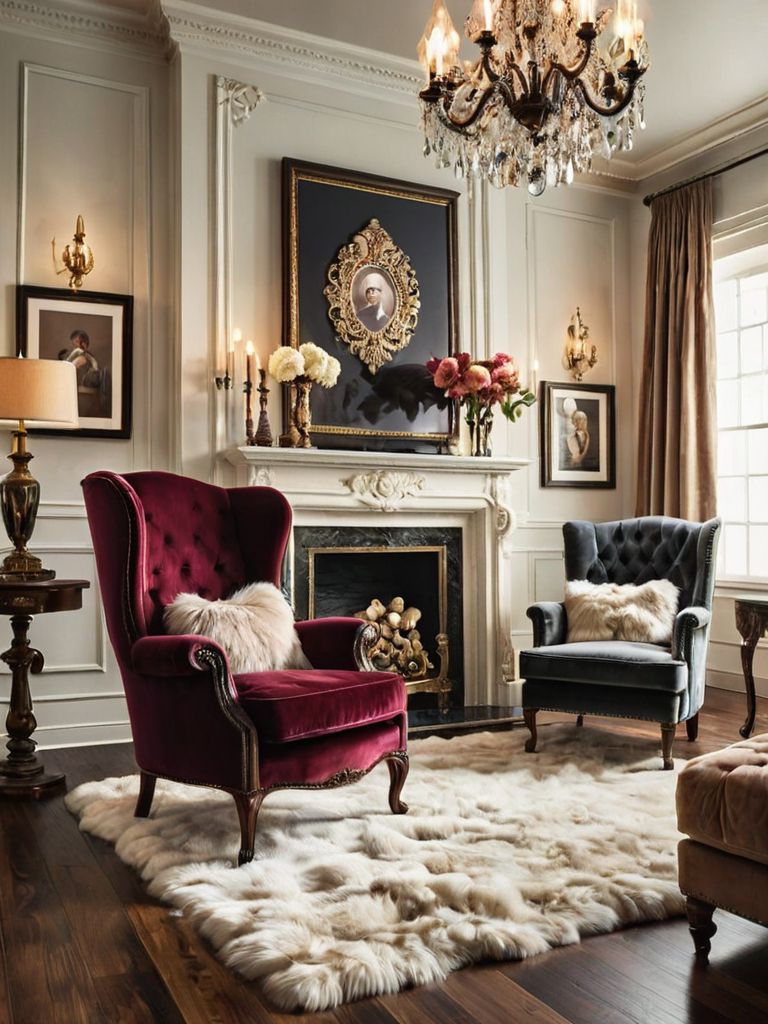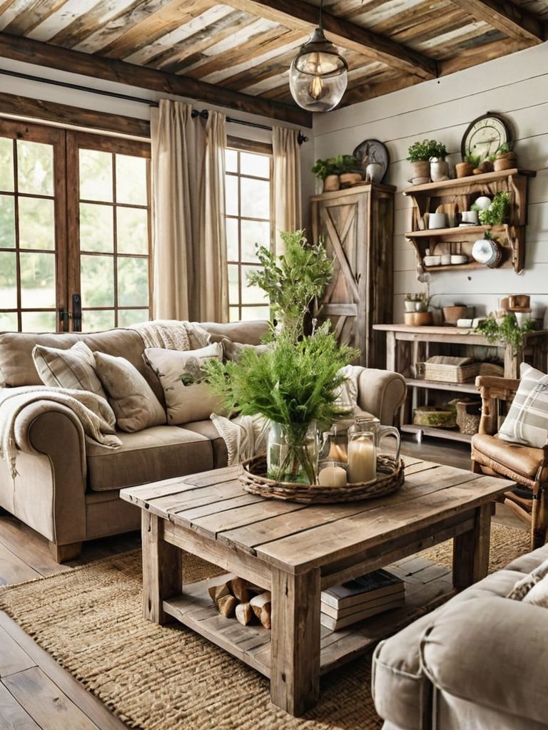 Rustic Farmhouse Oasis: Create a cozy retreat with weathered barnwood accents, distressed finishes, and plush, oversized furniture. Infuse warmth and charm into your space with an antique chandelier and a stone fireplace, perfect for chilly winter nights. Complete the look with earth-toned linens, woven baskets, and vintage farmhouse decor for a timeless and inviting aesthetic.