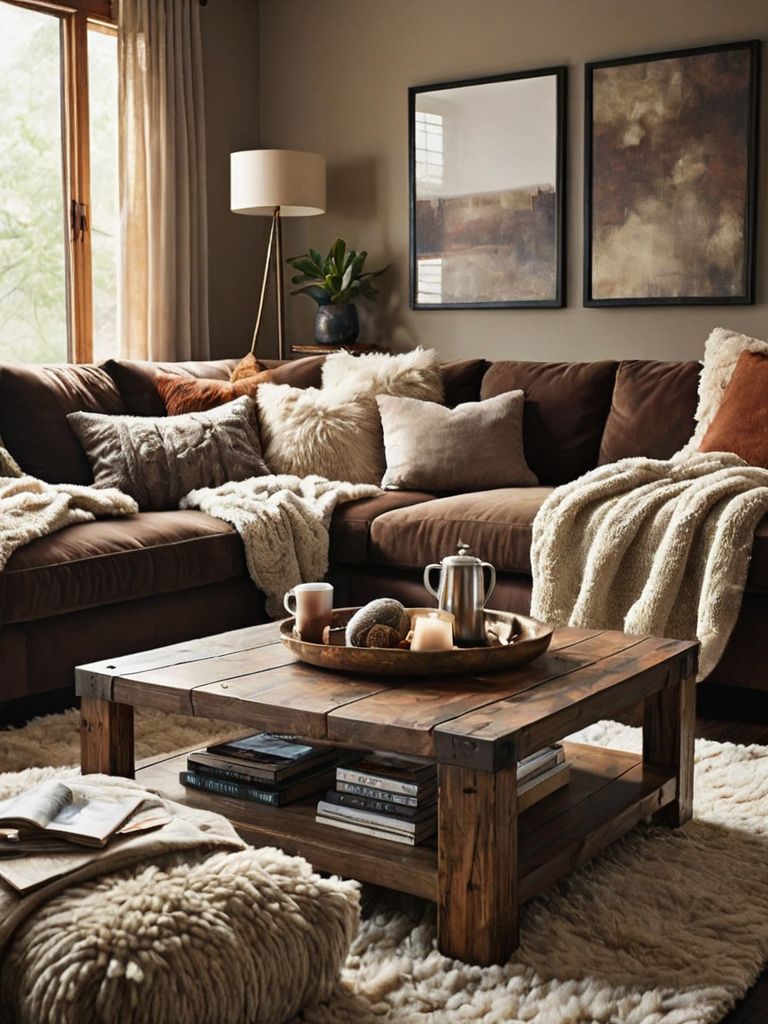 Woven blankets, Macrame wall hangings, Tasseled throw pillows, Earthy colored paint, Textured textilesDescription