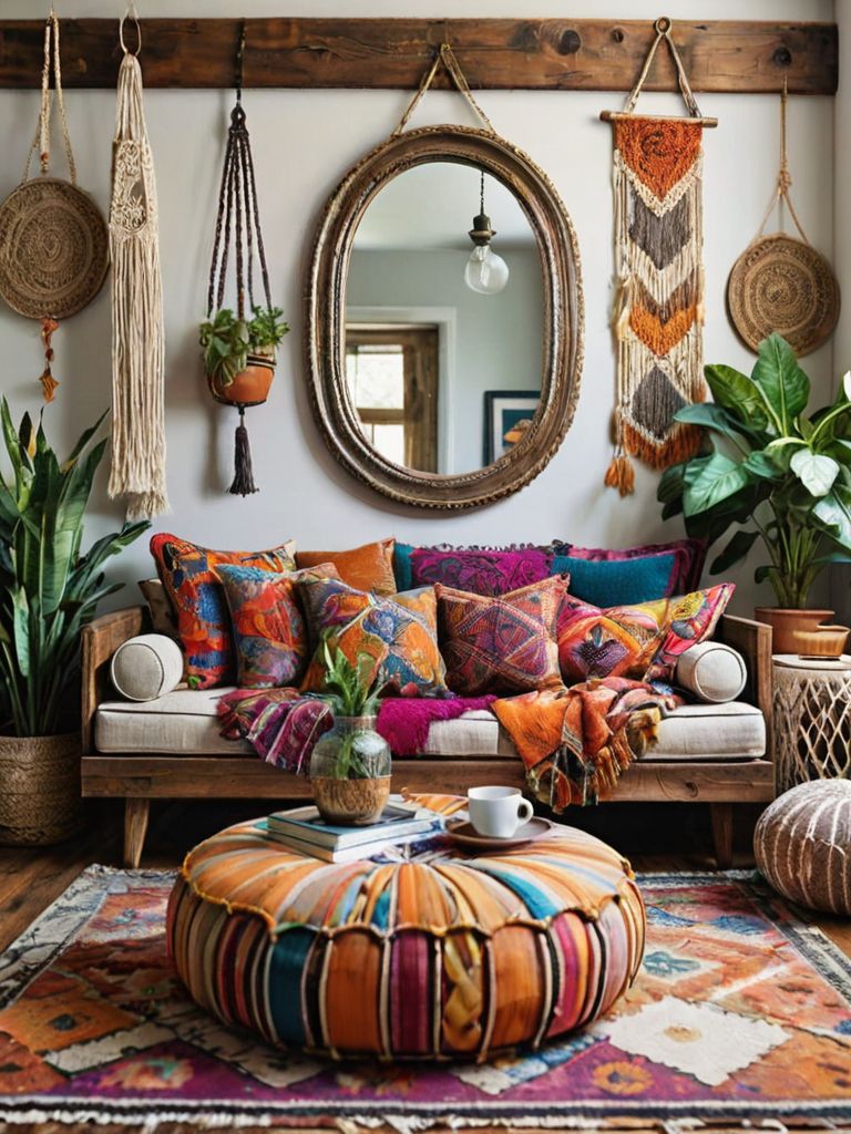 Living Room Oasis: Create a peaceful and inviting sanctuary in your living room with a nature-inspired theme. Bring the outdoors in by incorporating earthy tones and textures, such as a lush green accent wall, soft beige furniture, and woven rattan accessories. Complete the look with leafy plants, scented candles, and cozy throws for the ultimate relaxation.