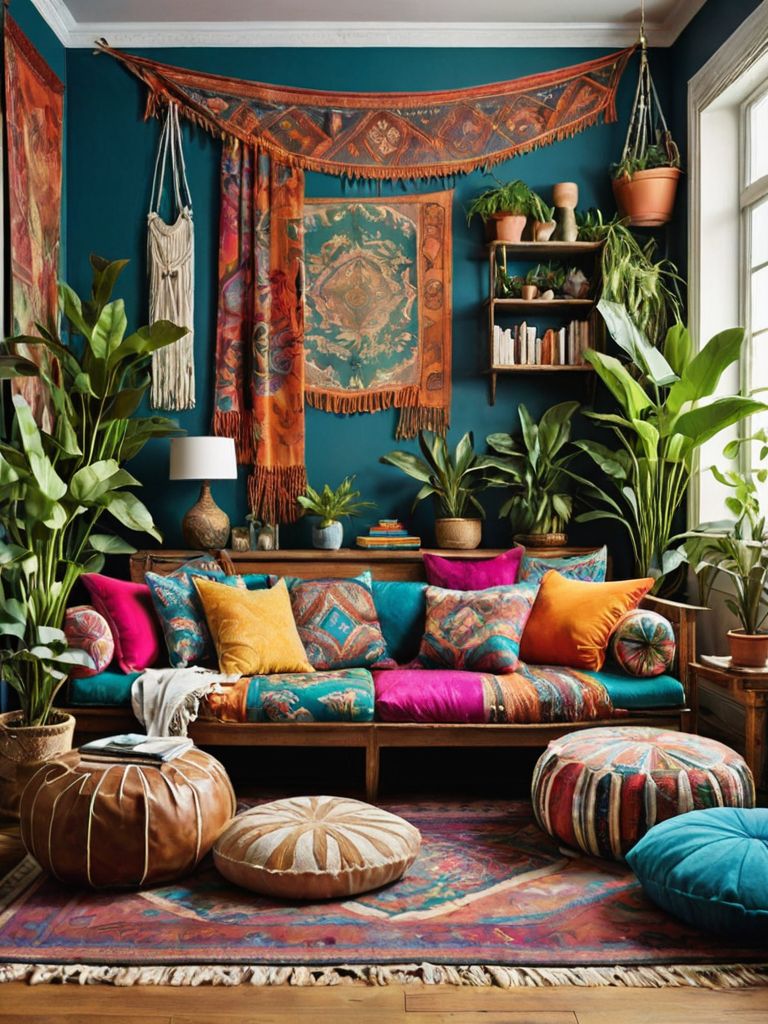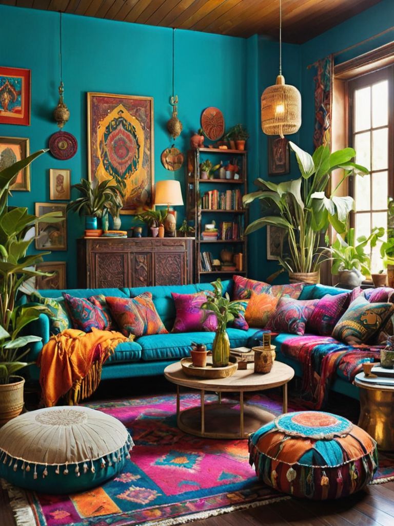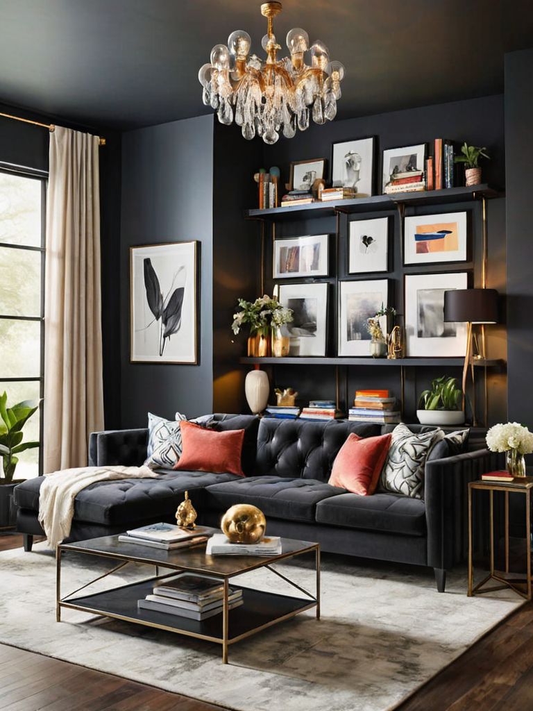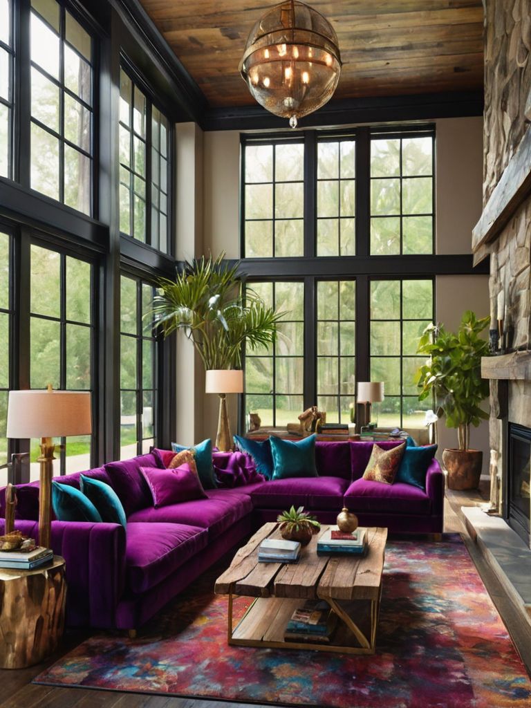 Indulgence in Tranquility: Create a serene and calming ambiance in your living room by incorporating a nature-inspired theme. Adorn the walls with a forest mural depicting lush greenery and graceful birds, complemented by floor-to-ceiling linen curtains that allow natural light to flood the room. Layer the plush seating area with earth-toned cushions and a faux fur rug, evoking a sense of coziness while sipping tea and admiring the beauty of nature in the comfort of your own home.