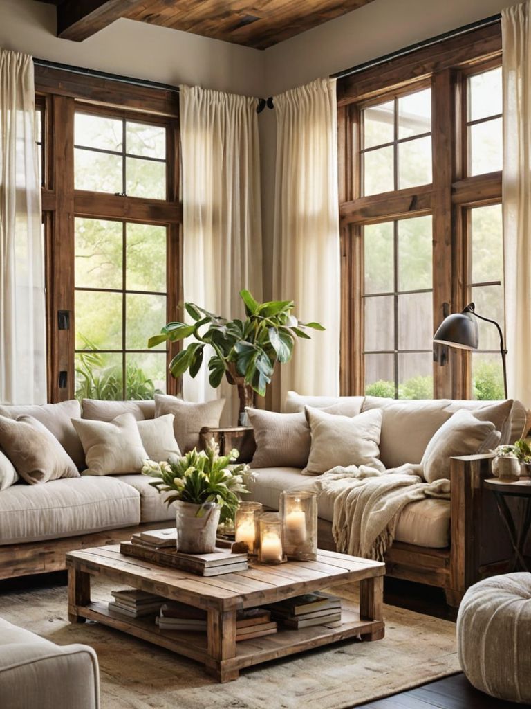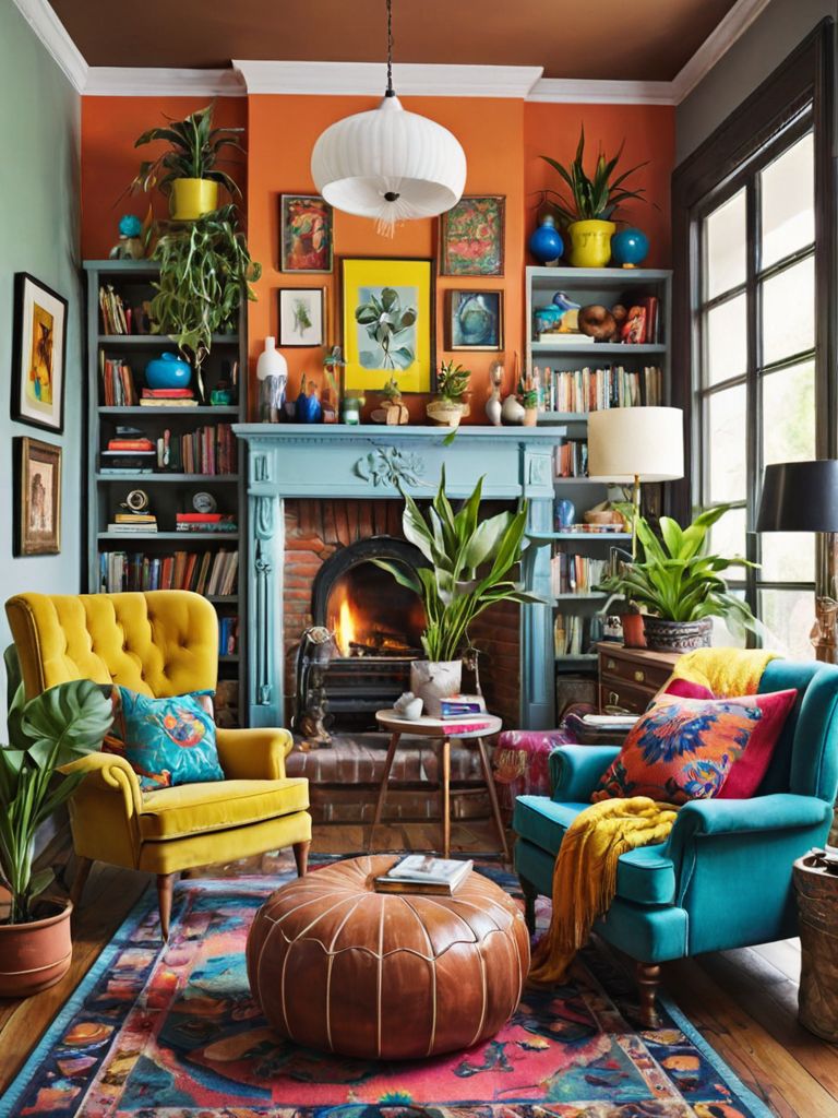 Oversized sofas, Soft pastel-colored throws, Patterned pillows, Curated artwork, Intricate wall hangingsDescription