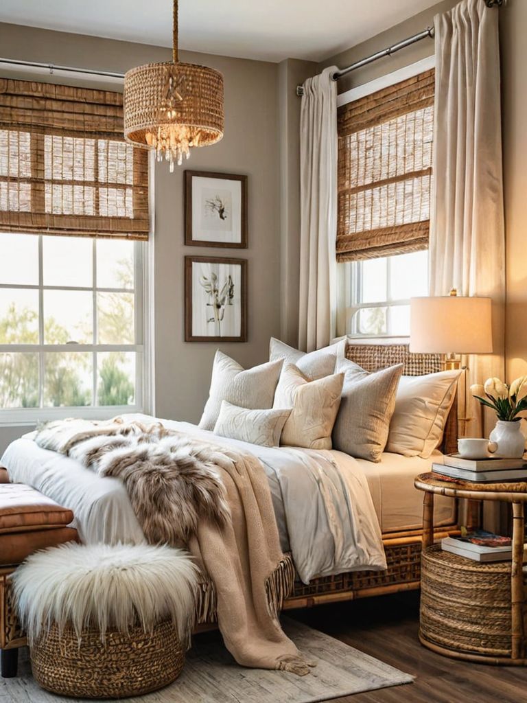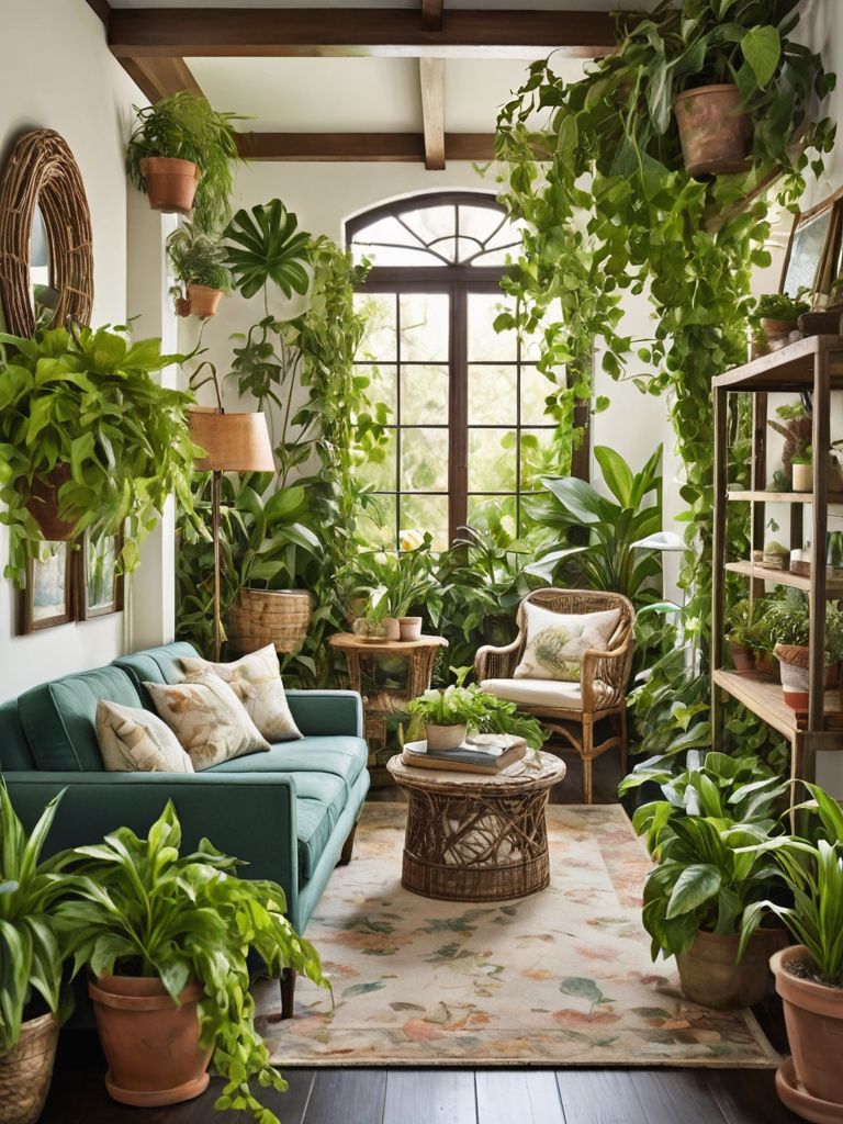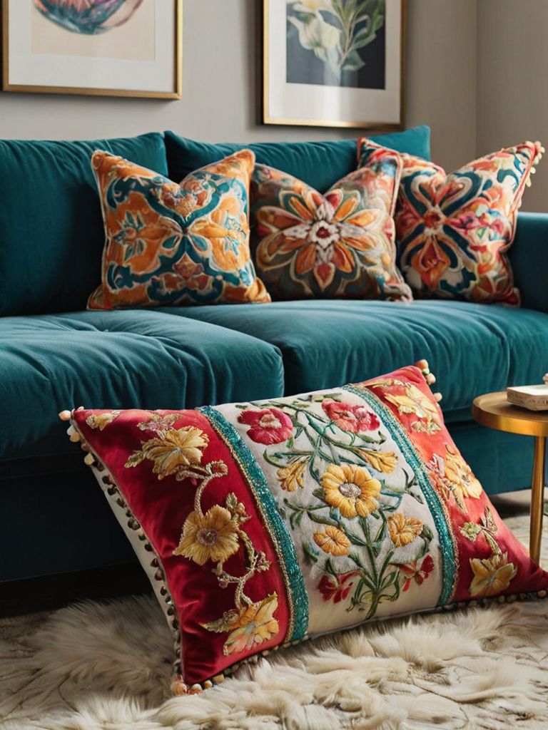 Bohemian tapestries, Macrame hangings, Textured rugs, Plush cushions, Vintage-inspired furnitureDescription