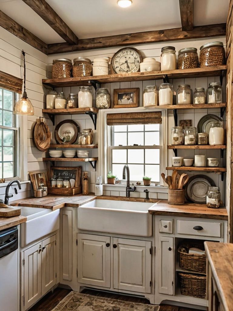 Rustic Farmhouse Chic: Step into the charming world of a quaint farmhouse surrounded by rolling fields and a white picket fence. Imagine adorning your home with natural and weathered wooden accents, vintage-inspired furniture, and cozy textiles in soft earth tones. Complete the look with a stone fireplace, a whitewashed brick wall, and dainty floral arrangements for a touch of elegance, creating a warm and inviting space that embraces the timeless charm of a rustic farmhouse.