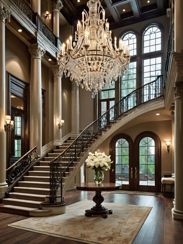 Dream Home Decorating: Transform your living room into a cozy sanctuary by utilizing warm, earthy tones on the walls and furniture. Add a touch of elegance with a statement chandelier hanging overhead, illuminating the space like a dazzling centerpiece. Complete the look with plush, oversized throw pillows and a soft, fluffy rug that invites you to sink in and relax.