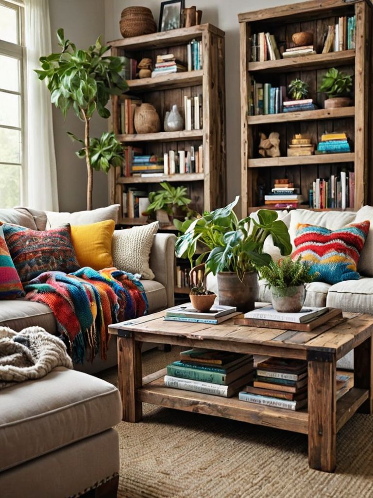 Rustic Farmhouse: Transform your living space into a cozy retreat with a rustic farmhouse theme. Imagine weathered barnwood accents, vintage metal decor, and distressed furniture creating a warm and inviting atmosphere. From shabby chic textiles to a palette of earthy tones, this home decorating idea embraces the charm of the countryside while providing a timeless and comforting ambiance.