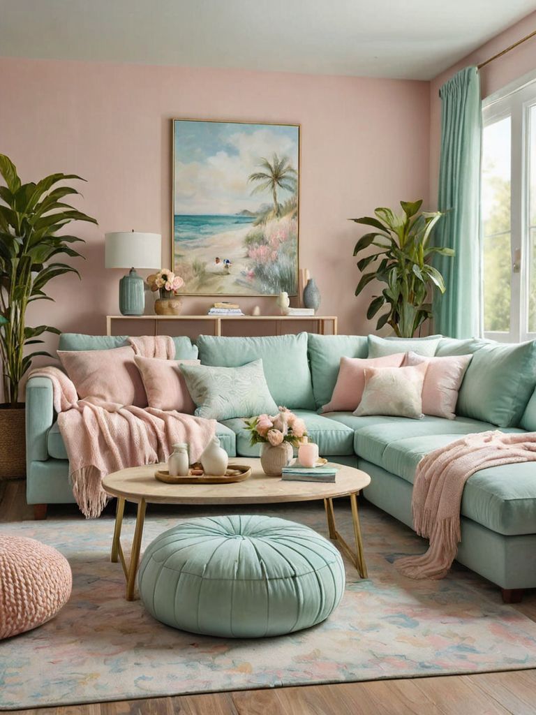 Palette of Pastels: Transform your living space into a serene oasis with a calming palette of pastel colors. Soft hues of powdery blues, blush pinks, and mint greens will create a soothing atmosphere that promotes relaxation and tranquility. Add plush textured throw pillows, sheer curtains, and delicate artwork to complete the look and create a dreamy haven within your home.