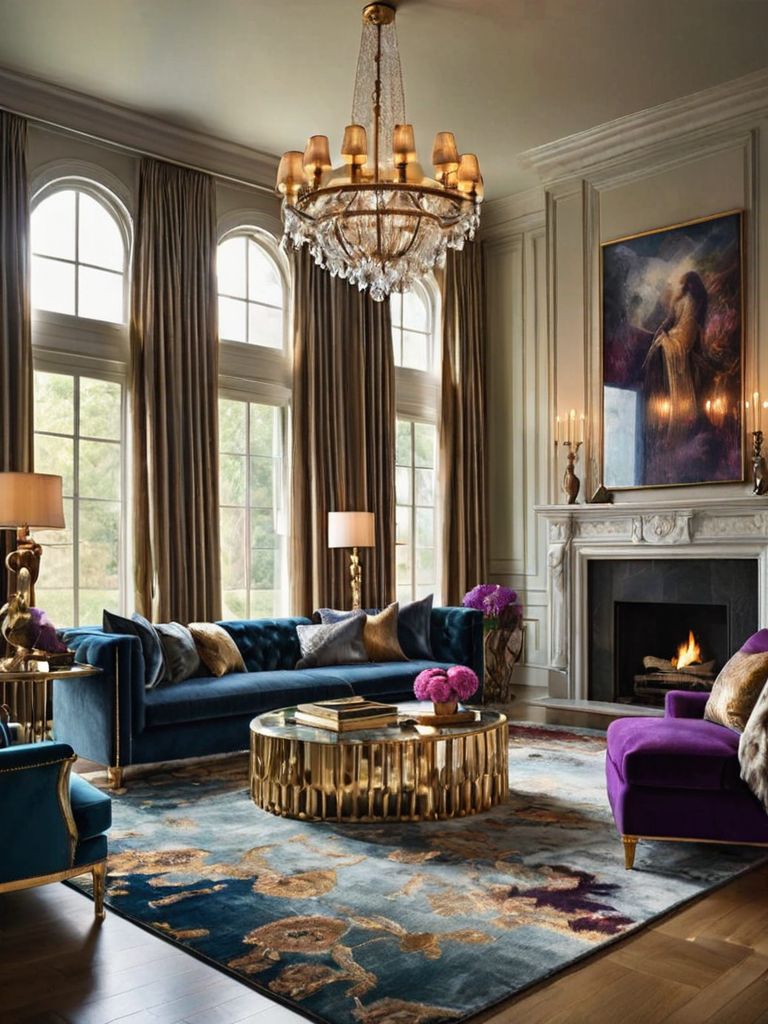 Paisley-printed tapestries, Plush velvet pillows, Macrame wall hangings, Bold-hued accent pieces, Rich textured rugsDescription