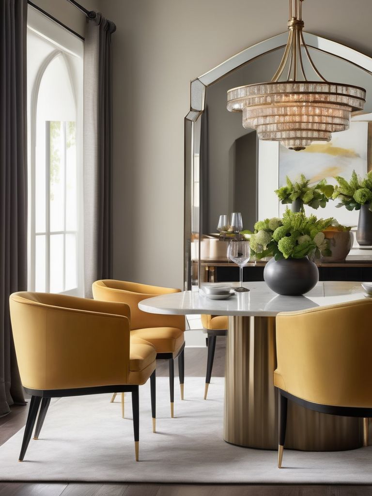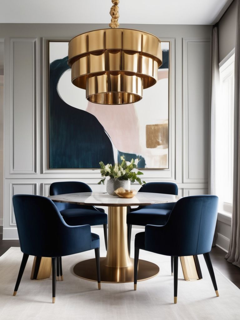 Transform Your Dining Room into a Statement of Grandeur with Bold Wall Art and Visually Striking Mirrors