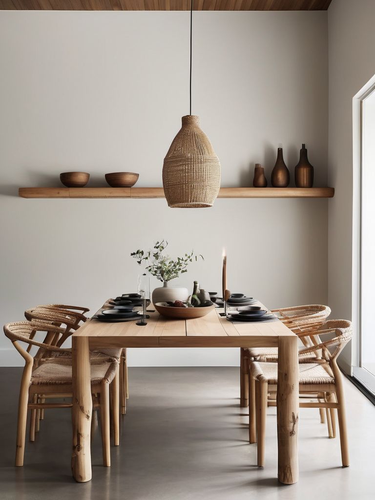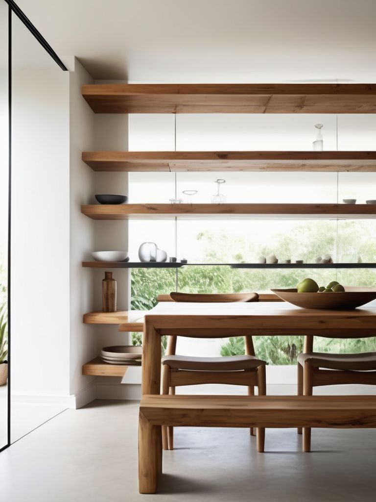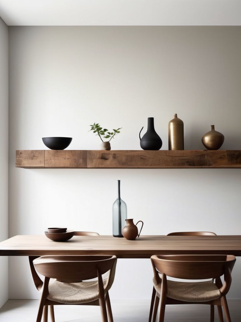 Create a Serene Zen Oasis in Your Dining Room with Floating Shelves and Minimalistic Design