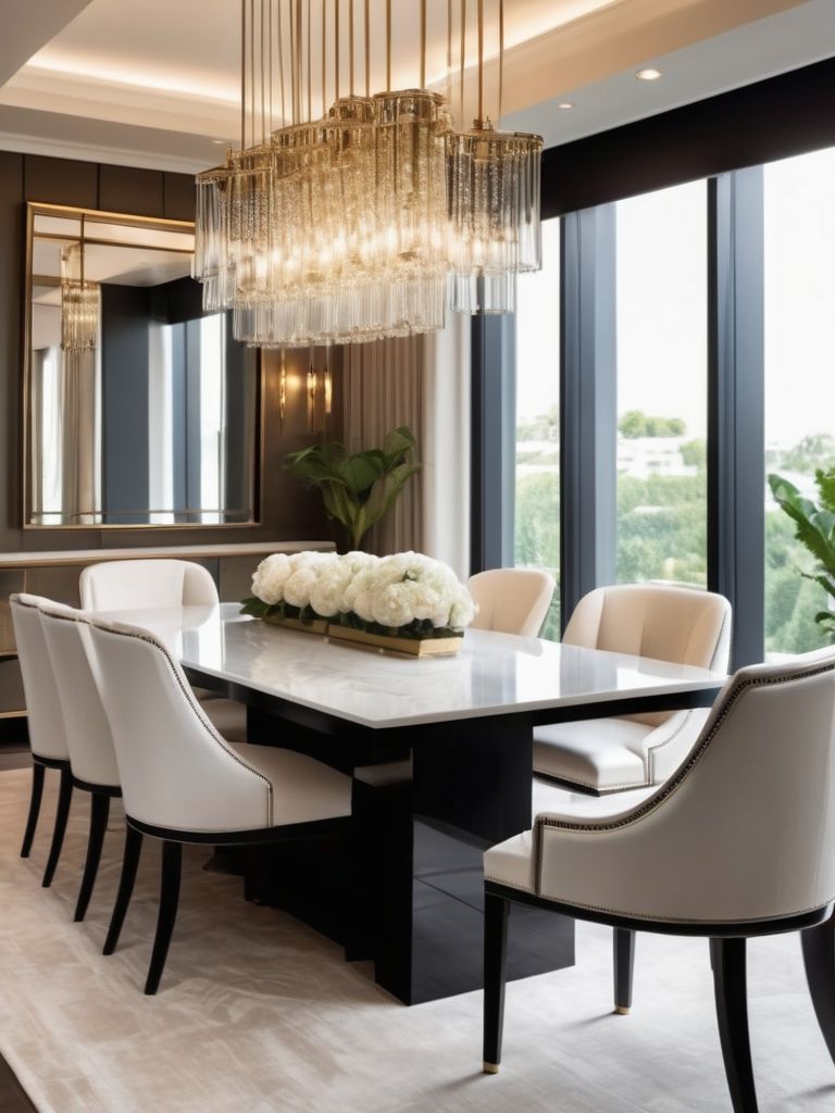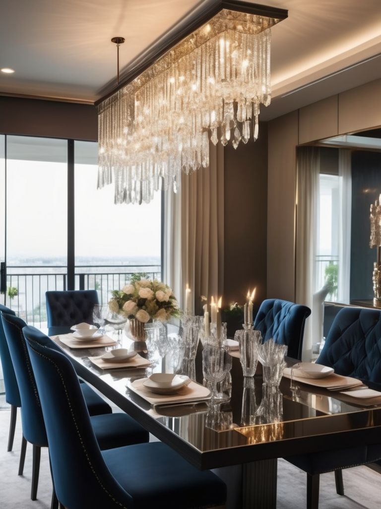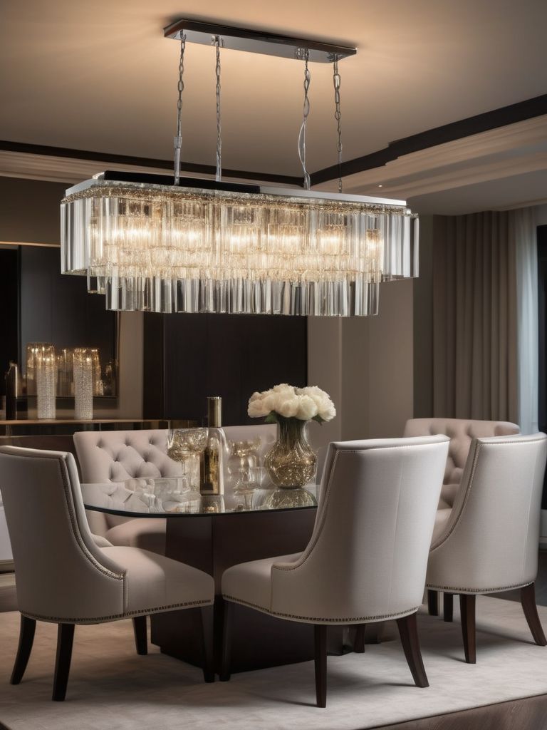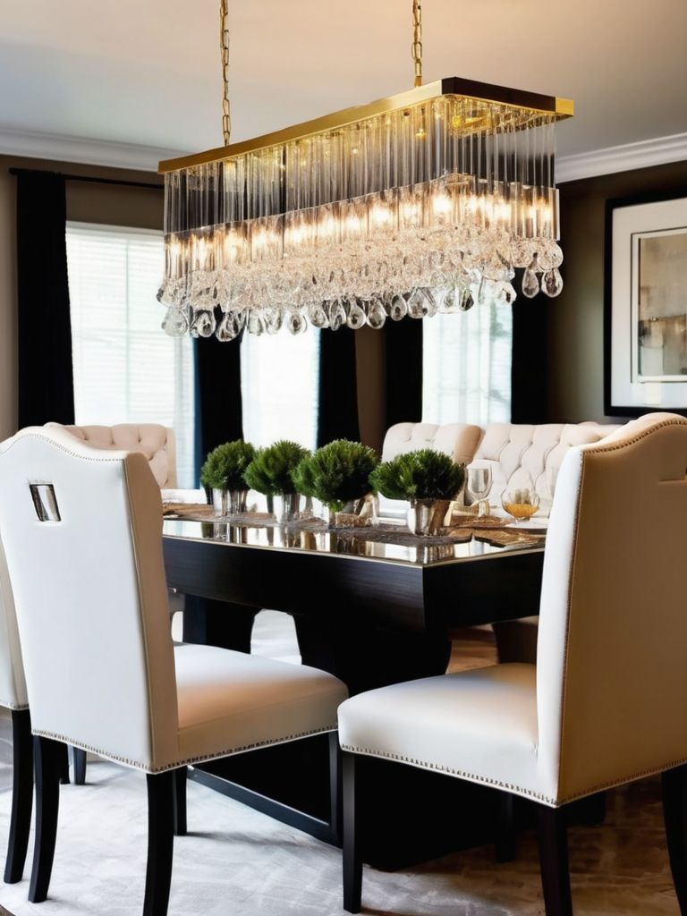 Unleash Opulence: Elevate Your Dining Room with Glass Chandeliers and Mirrored Decor