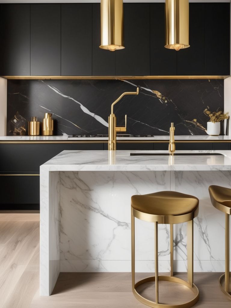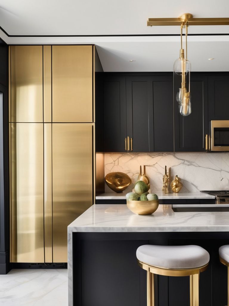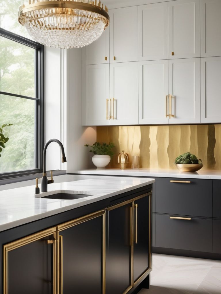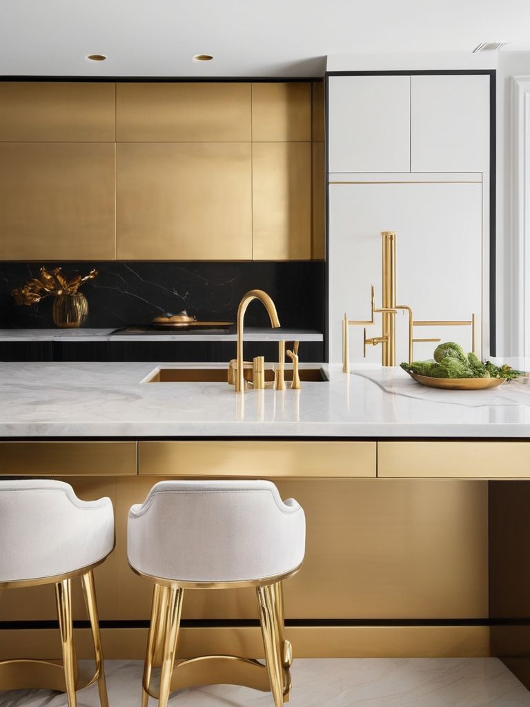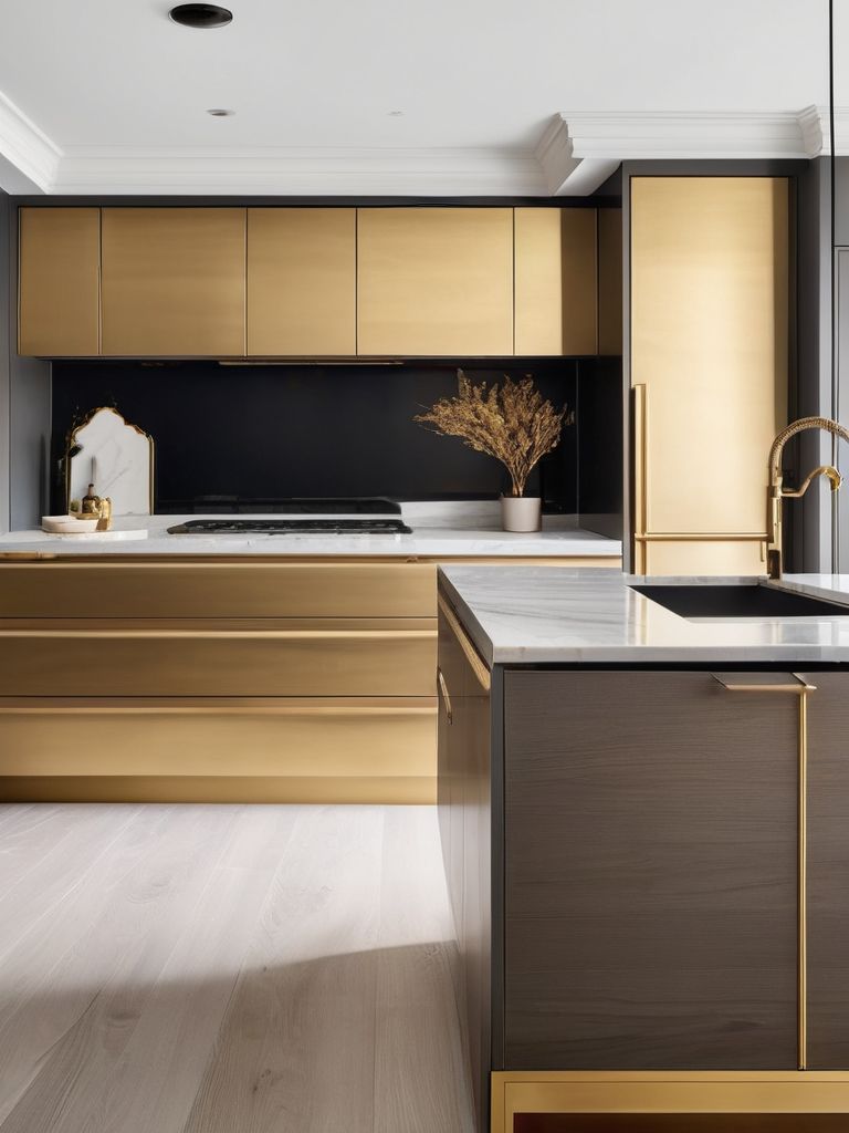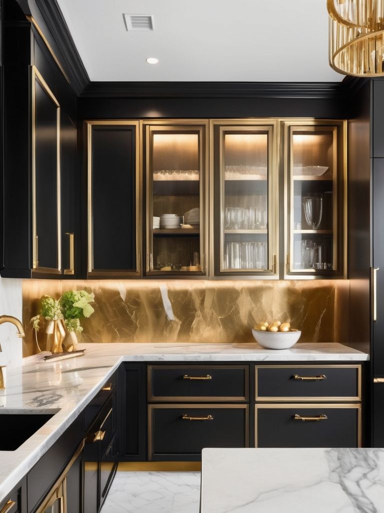 To add a touch of glam to your kitchen, consider incorporating luxe gold accents into the decor. This could include gold hardware for cabinets and drawers, gold lighting fixtures, or even gold-trimmed kitchen accessories. The addition of gold accents can bring warmth, luxury, and a touch of modern elegance to your kitchen space, creating a stunning and inviting atmosphere for both cooking and entertaining.
