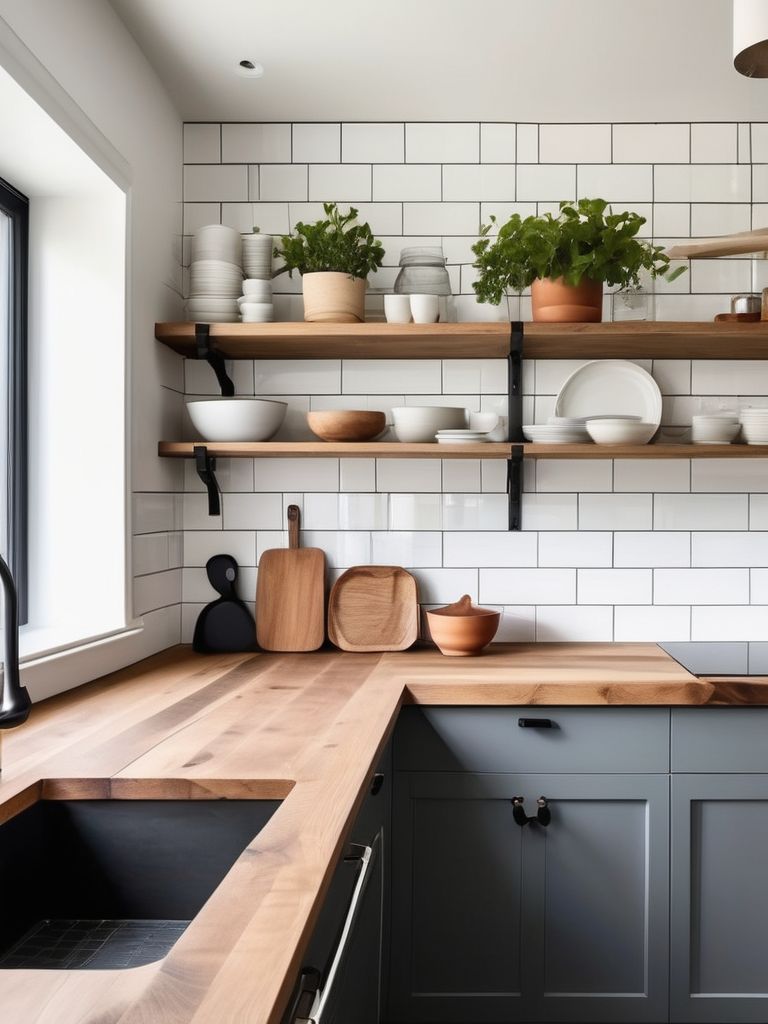 Revamp your kitchen with open shelving displays to achieve a modern and airy aesthetic. Embrace the minimalist trend by showcasing your favorite cookware and dishes, while streamlining the overall look of your kitchen. Consider using floating wooden shelves to create a warm and inviting atmosphere, and add greenery and decorative accents to infuse personality. Opt for a clutter-free approach and prioritize functionality while still making a design statement.