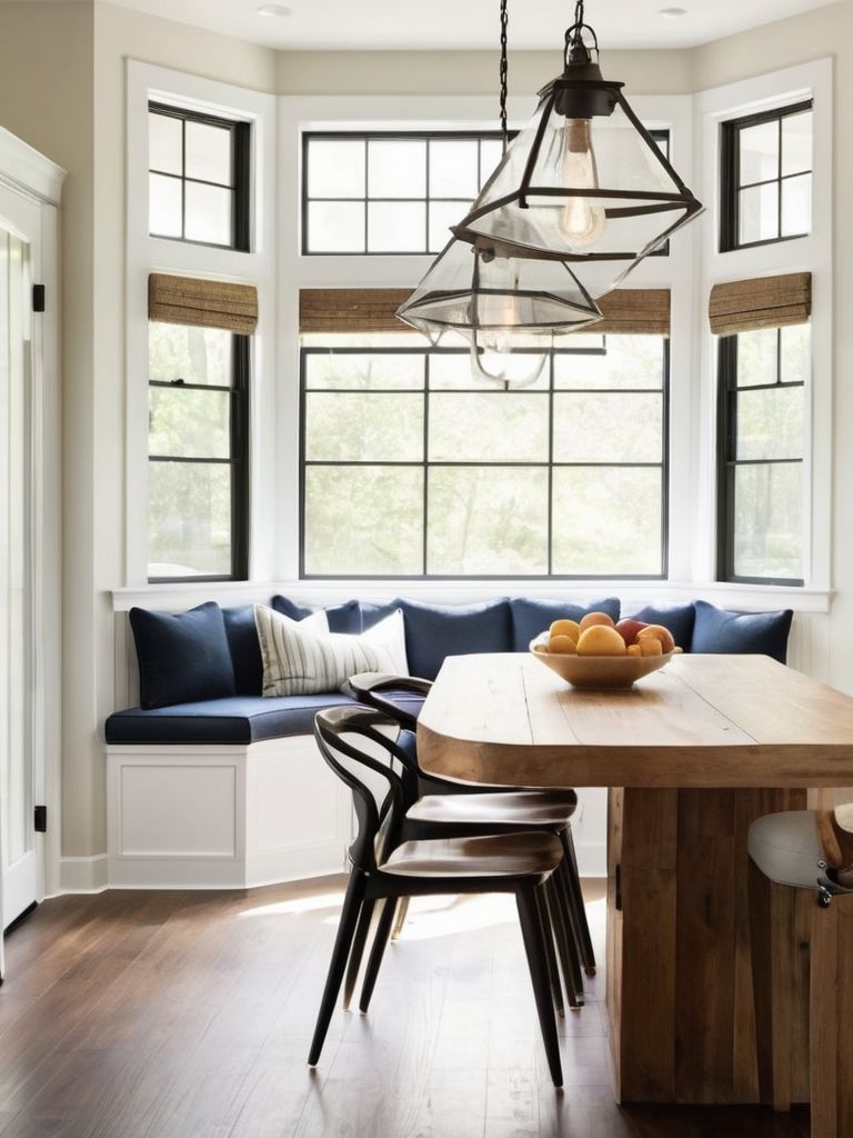 Create a warm and inviting ambiance in your kitchen with vintage pendant lighting over a cozy breakfast nook. Choose unique and timeless fixtures that complement the kitchen's overall aesthetic while providing ample illumination. Consider adjustable dimmer switches to effortlessly set the mood for intimate meals or lively gatherings. Embrace the charming and nostalgic atmosphere while enhancing the functionality of the space with stylish and versatile lighting.