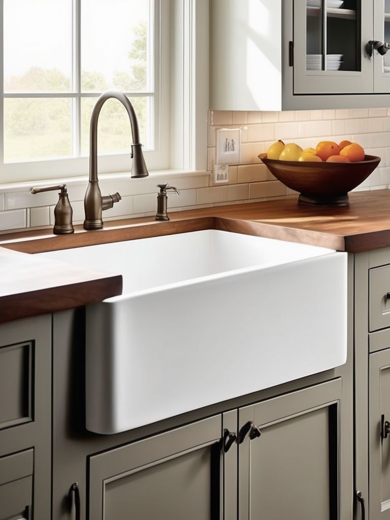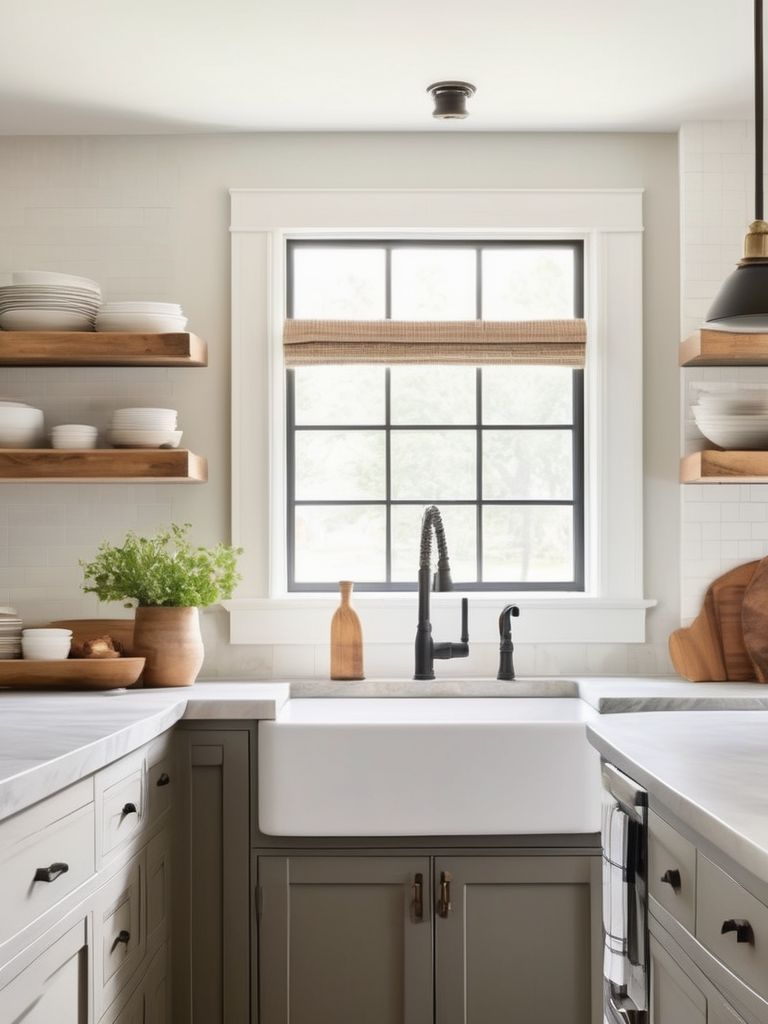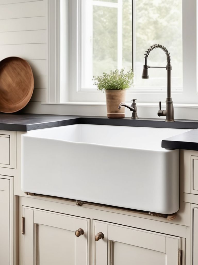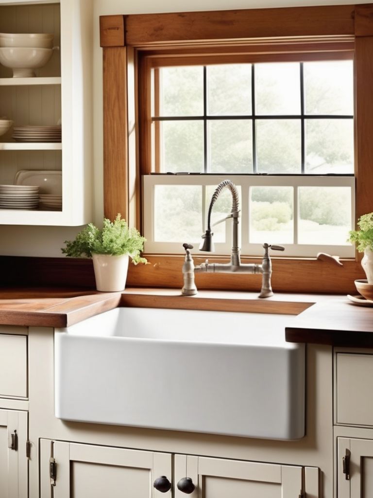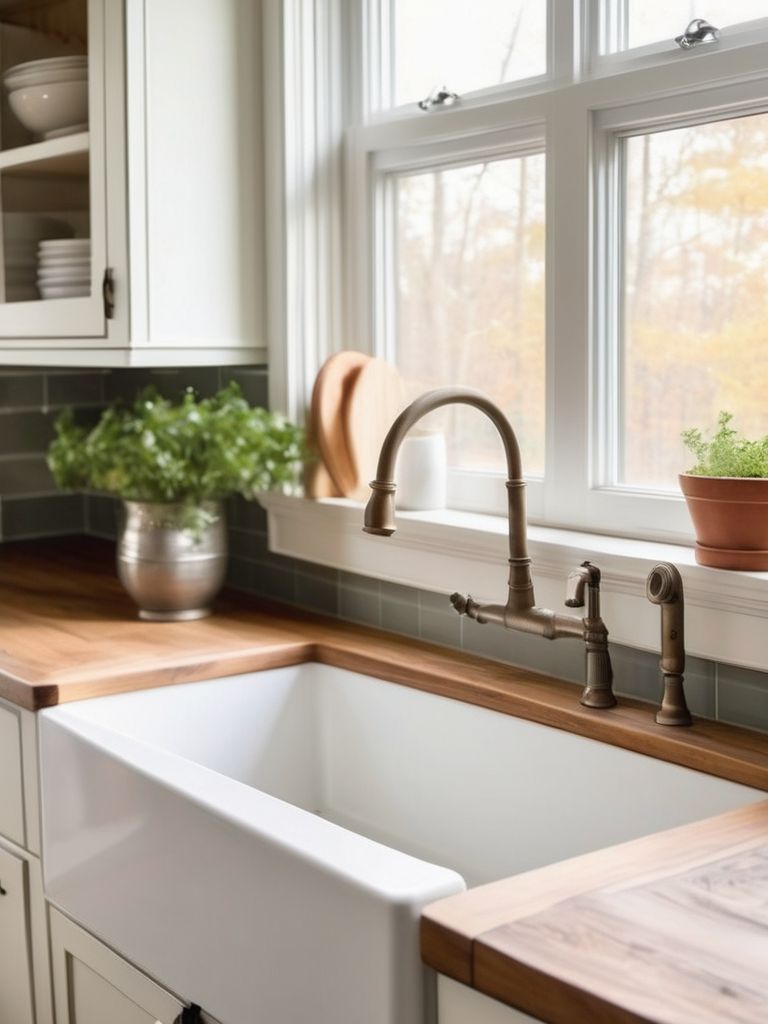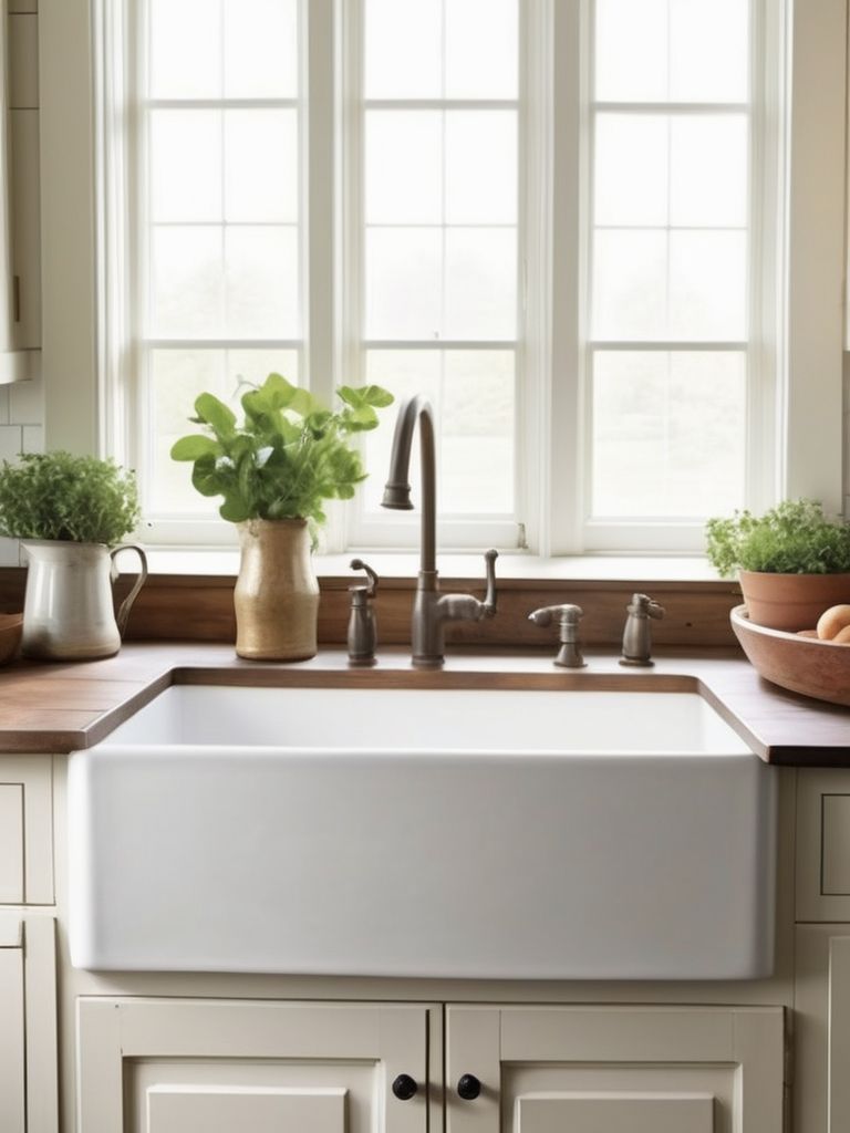 Transform your kitchen into a cozy and inviting space with the addition of a farmhouse sink and quaint window dressings. The farmhouse sink brings a touch of rustic charm, while the window dressings offer a soft and inviting ambiance. Consider pairing the sink with classic porcelain or modern stainless steel for a timeless look. Complete the space with charming curtains or blinds to add a touch of warmth and personality to your kitchen decor.