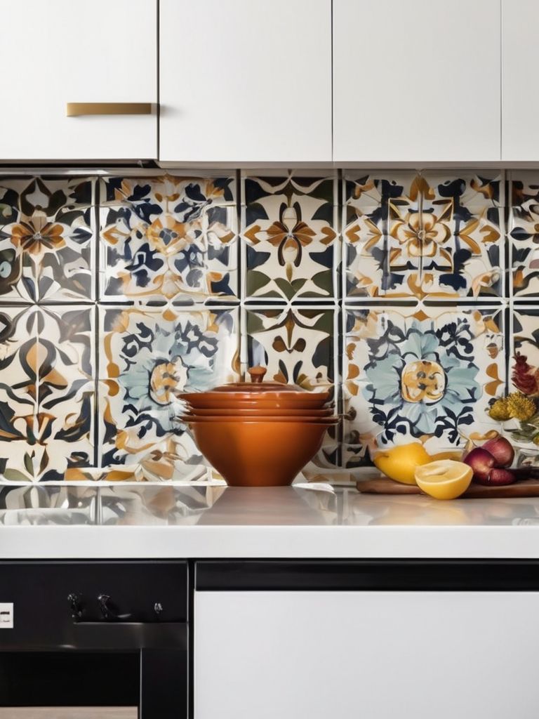 Handmade ceramic backsplash tiles, Mosaic backsplash tiles, Bold and vibrant patterned backsplash tiles, Eye-catching textured backsplash tiles, Different shaped and sized backsplash tilesDescription