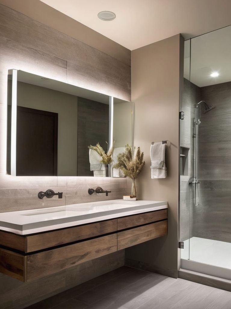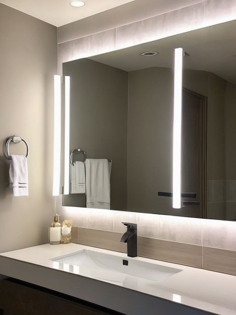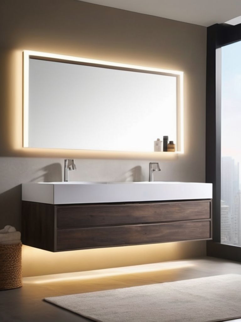 LED mirrors, Adjustable color temperature lighting, Stylish bathroom lighting, Modern bathroom design elements, Functional bathroom lightingDescription