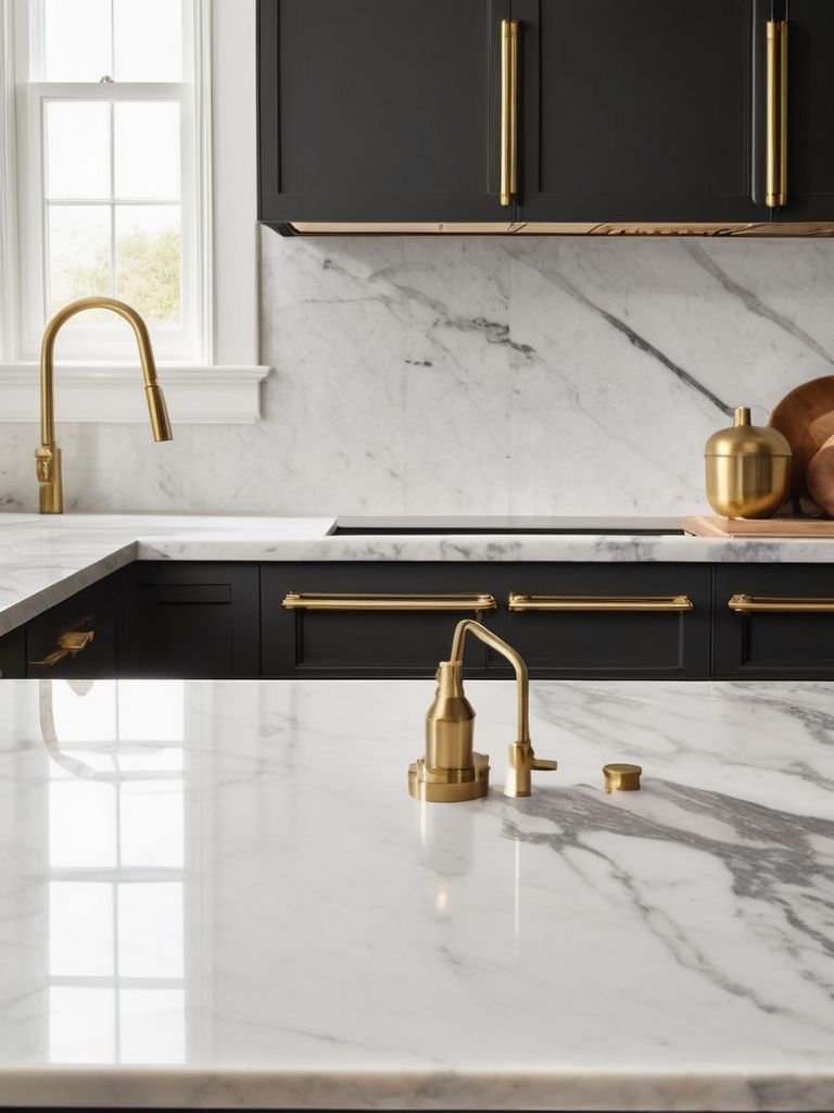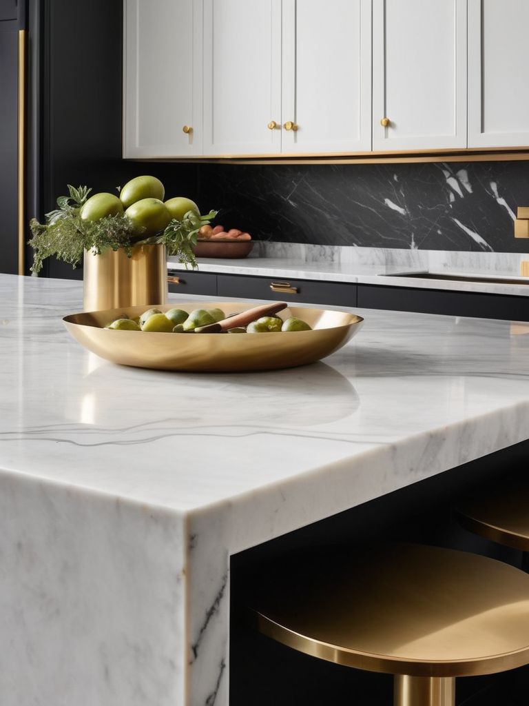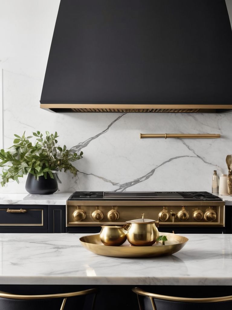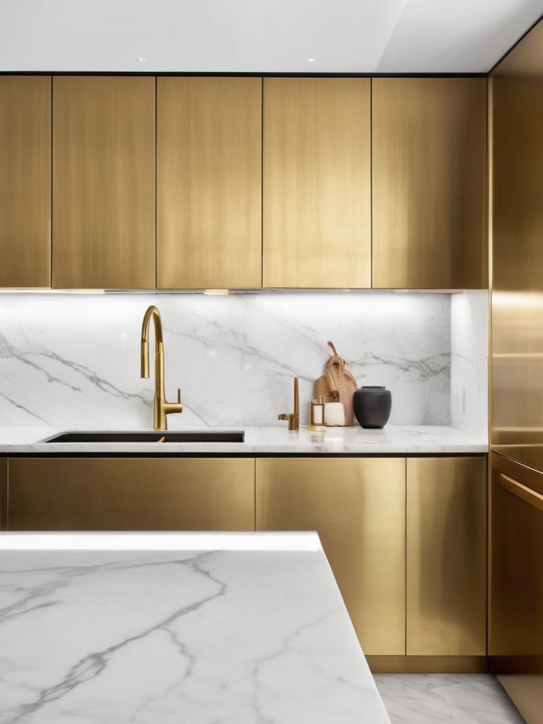 Transform Your Kitchen with Timeless Elegance: Marble and Brass Accents for a Sophisticated and Luxurious Aesthetic