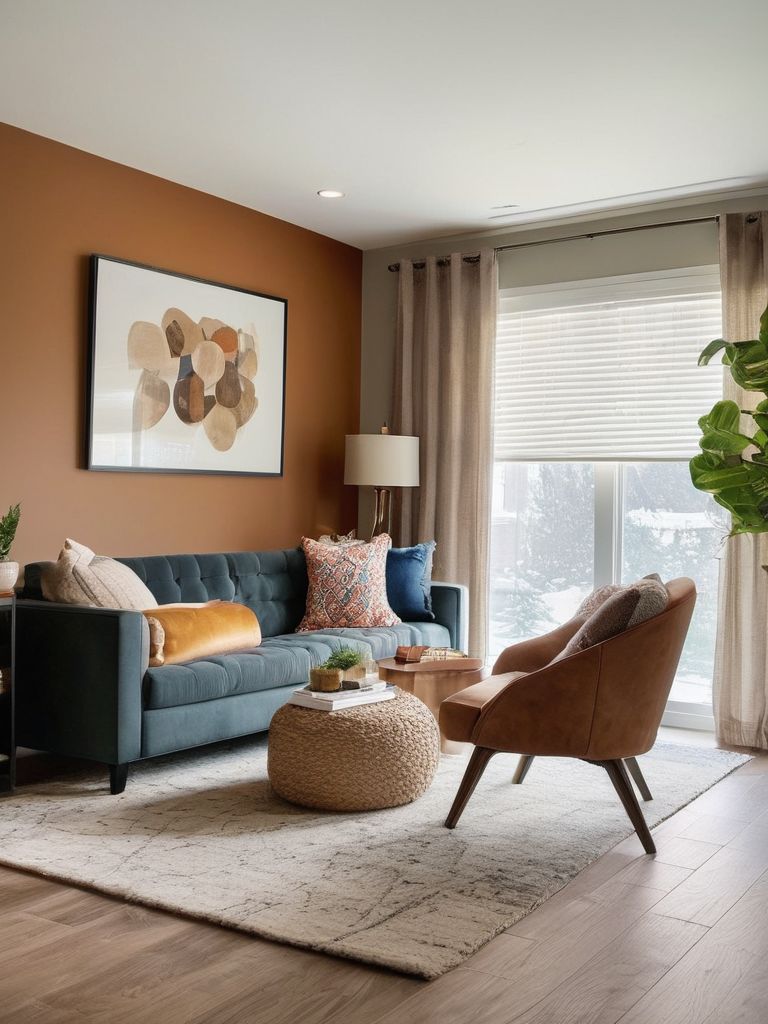 To create a cozy yet sophisticated living room, start by incorporating warm, inviting colors like deep blues, rich browns, and soft creams for a luxurious yet welcoming ambiance. Adding plush textures with velvet or chenille upholstery, faux fur throws, and area rugs will enhance the comfort factor while lending an air of sophistication. Lastly, incorporate elegant lighting fixtures such as statement chandeliers or sleek floor lamps to elevate the overall aesthetic and create a cozy, upscale atmosphere.