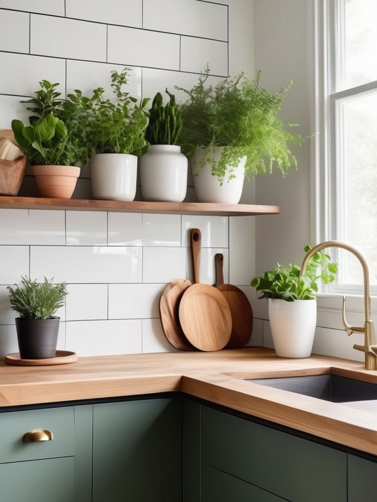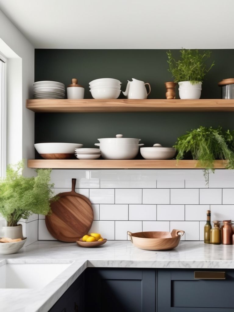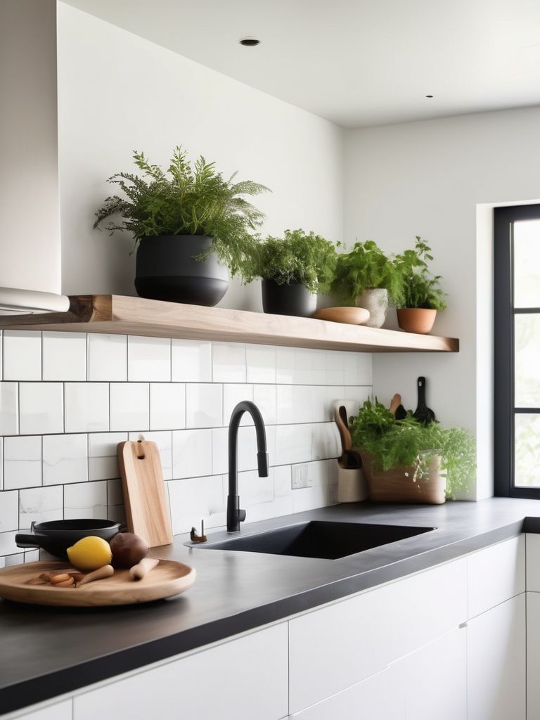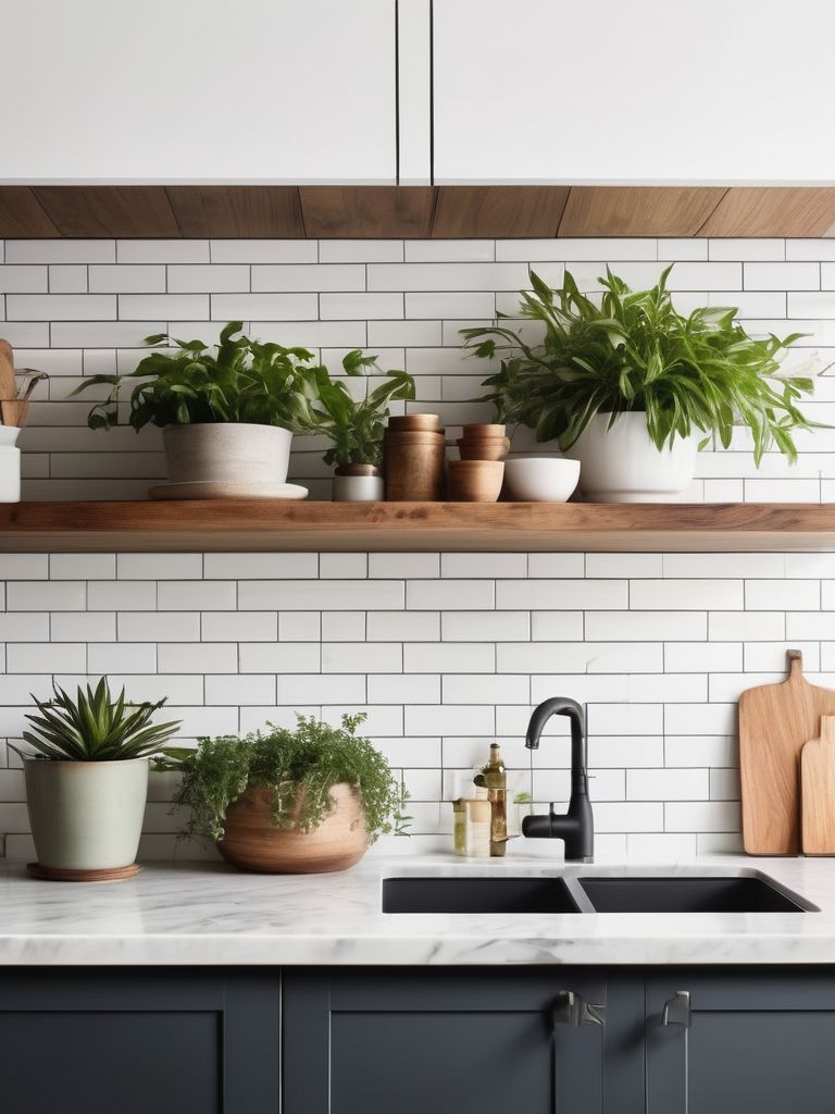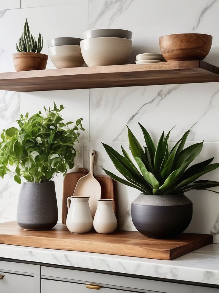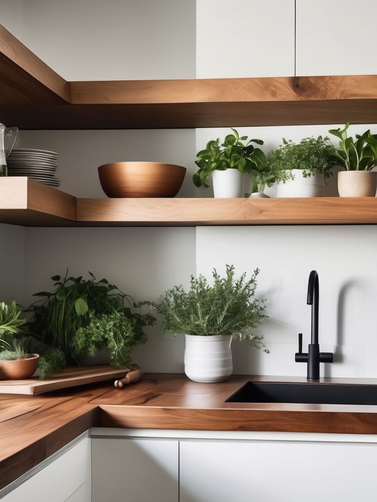 Revamp Your Kitchen with Chic Floating Shelves and Lively Greenery for a Fresh, Modern Look