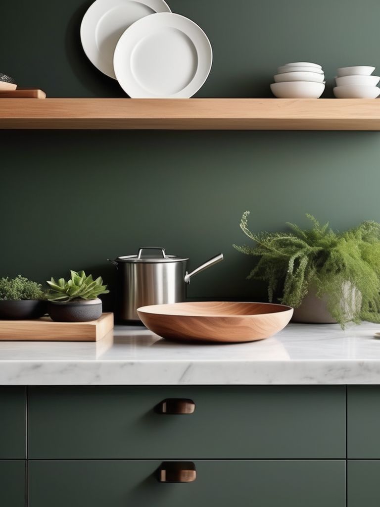 Transform your kitchen with sleek and modern floating shelves paired with vibrant greenery. Create an open and spacious feel by replacing traditional upper cabinets with floating shelves, allowing for a clean and minimalist look. Incorporate potted herbs and plants to bring life and freshness into the space, while also providing easy access to fresh ingredients for cooking. Achieve a harmonious balance between functionality and aesthetics with this contemporary and nature-inspired kitchen design.
