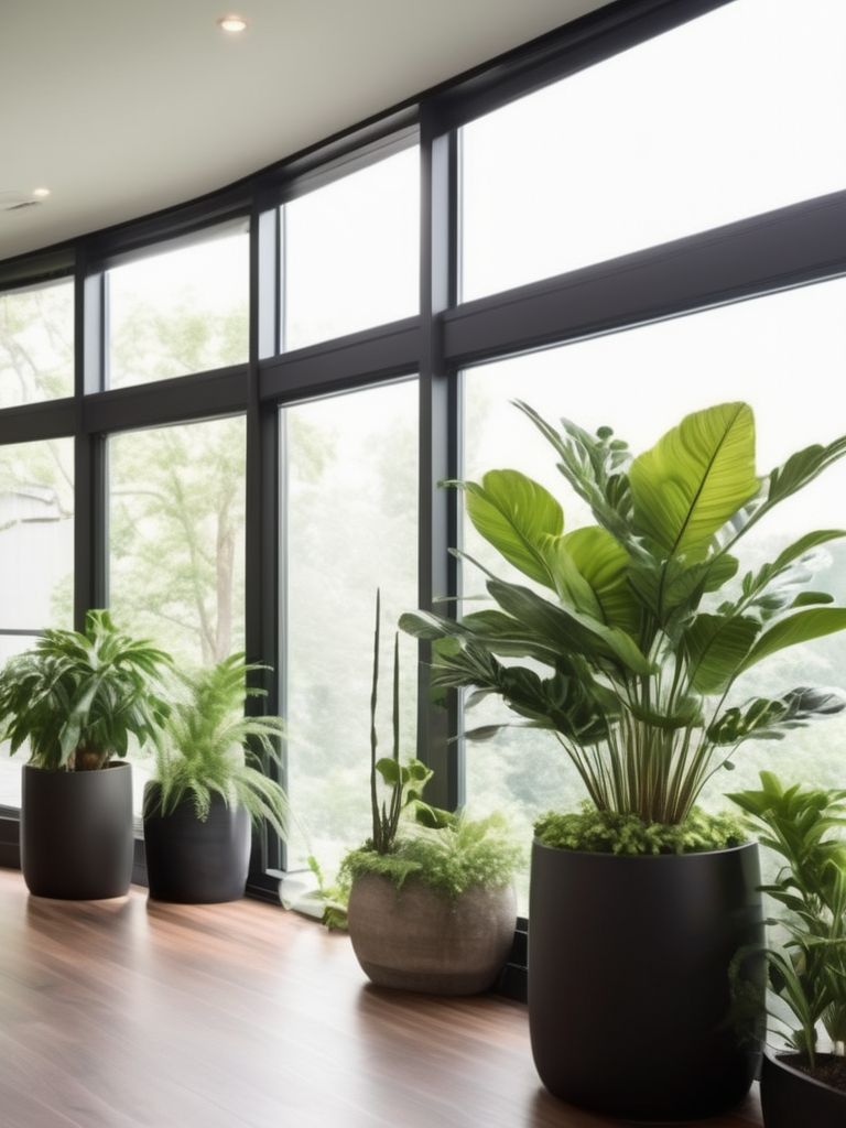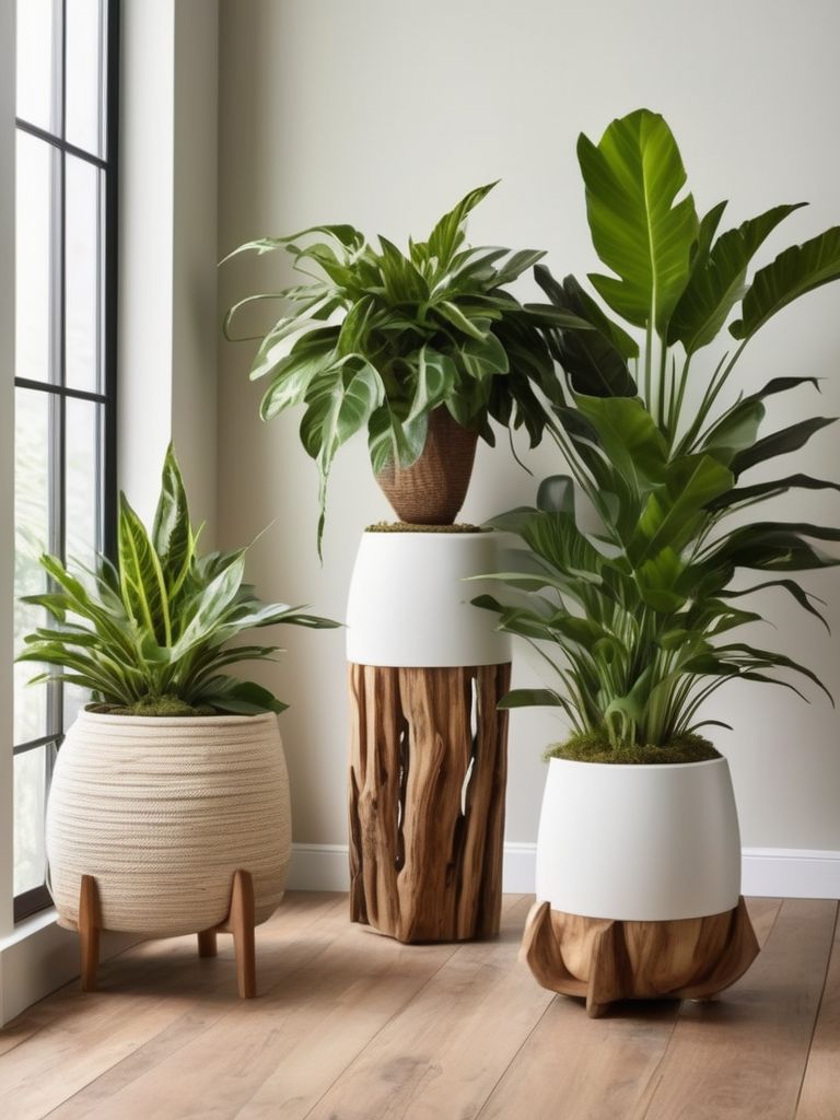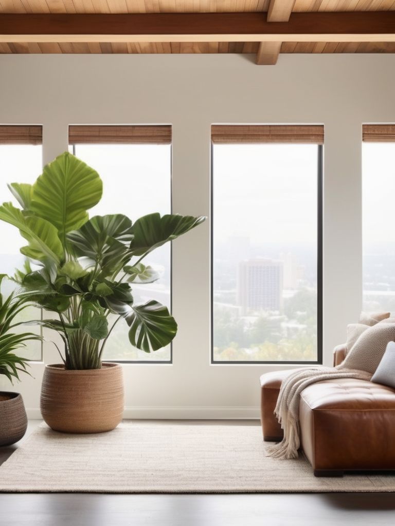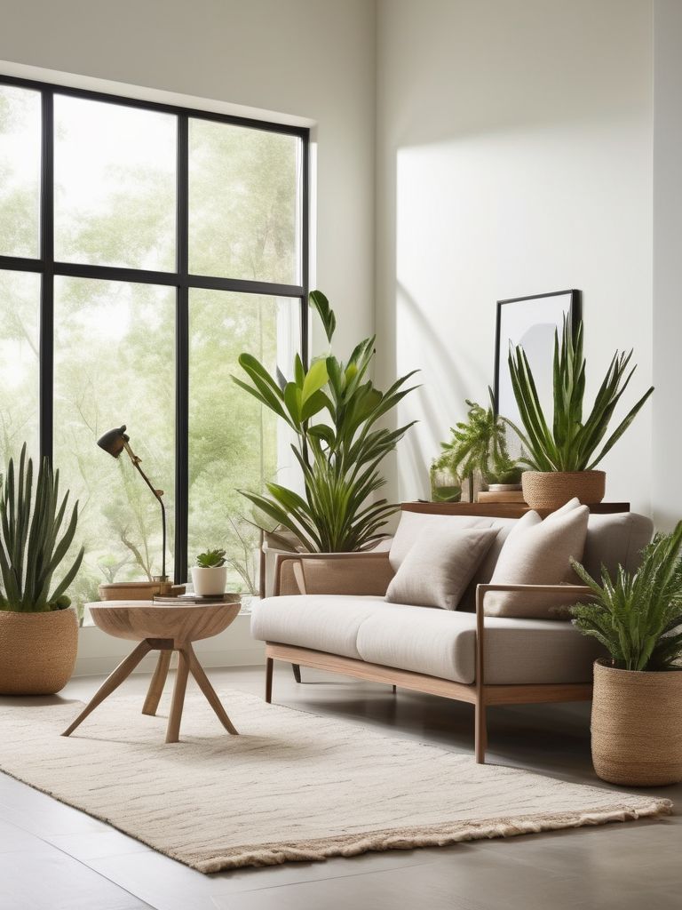 Fiddle leaf fig plant, Snake plant, Mix-and-match planters, Seating area, Natural light sourcesDescription