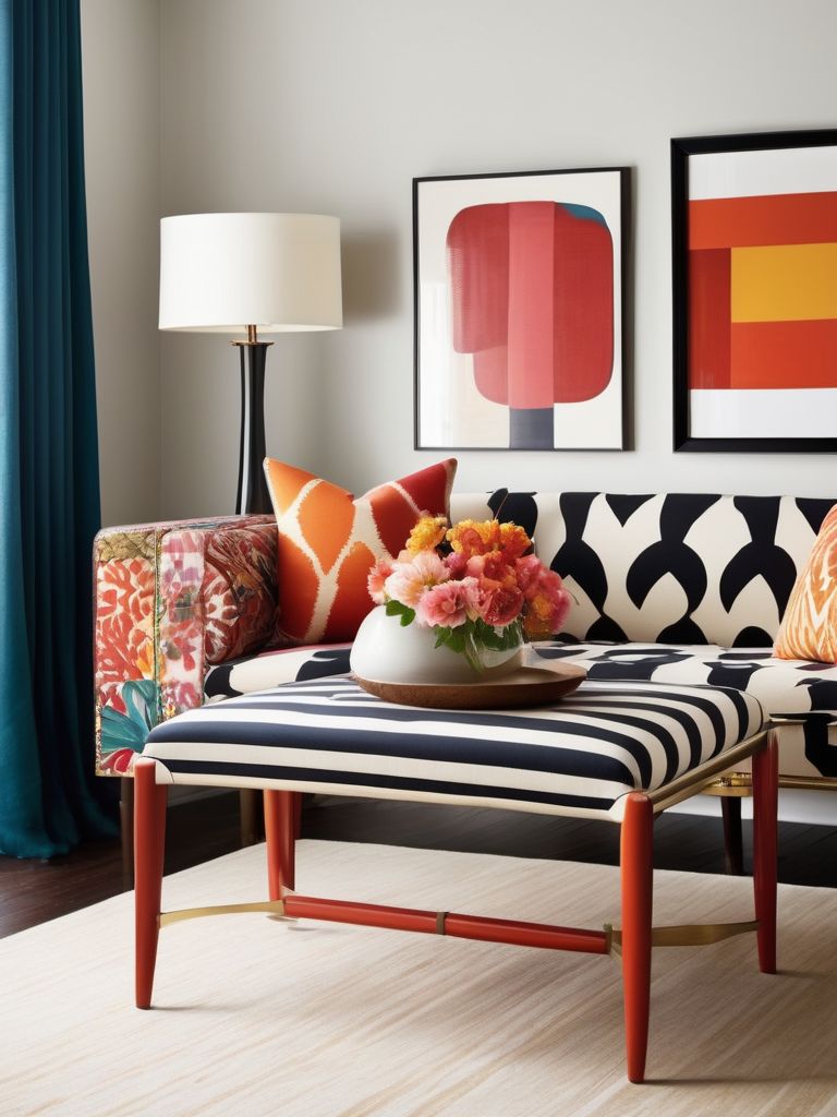 Revamp Your Living Room with Vibrant Prints and Eclectic Textures for a Bold and Energetic Atmosphere