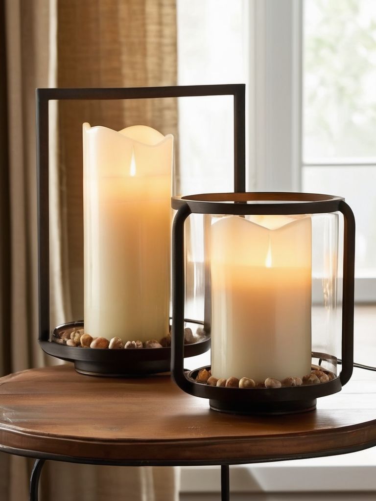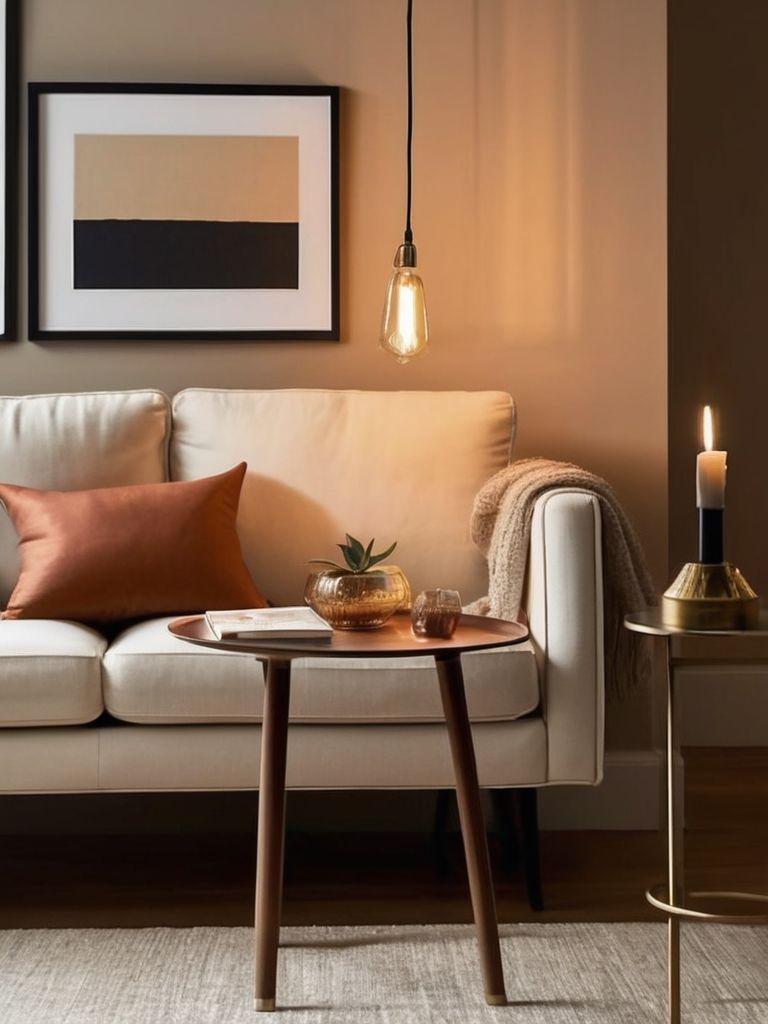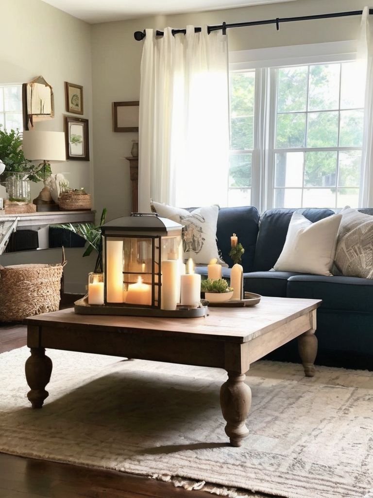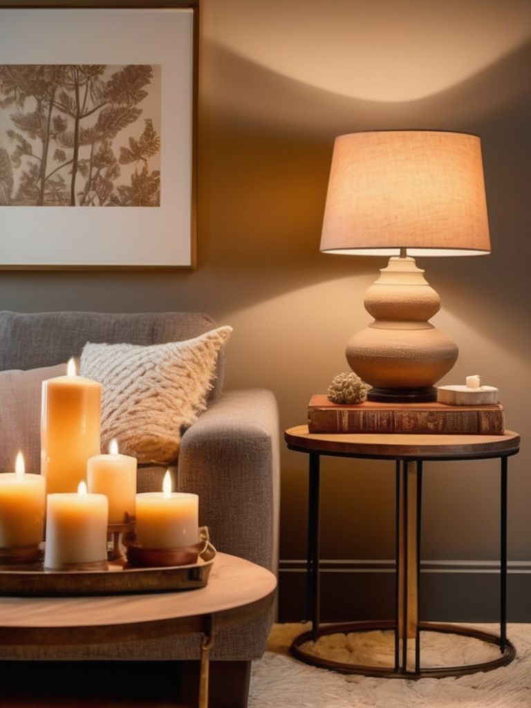 How to Create a Cozy and Inviting Living Room with Vintage Lamps and Candles for a Warm Glow