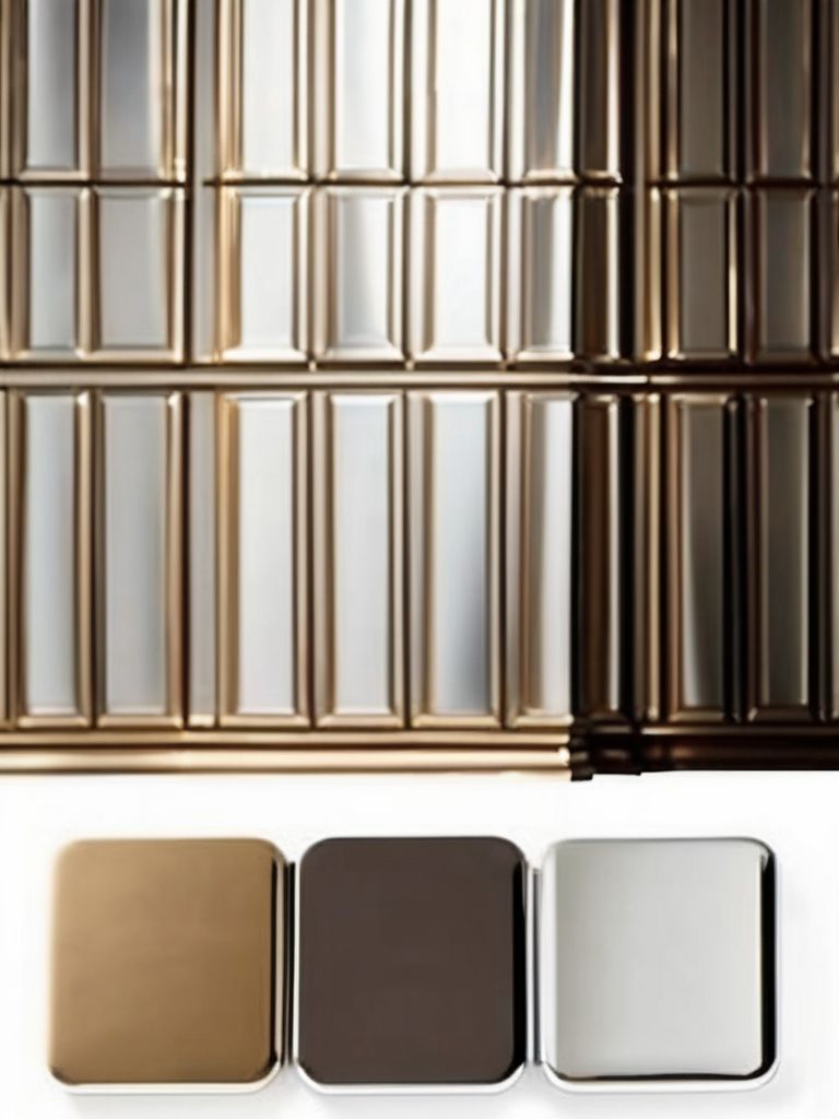 Mirrored coffee table, Wall-mounted mirrors, Mirrored accent pieces, Sheer curtains, Pale furnitureDescription