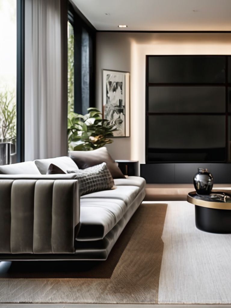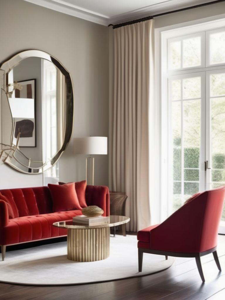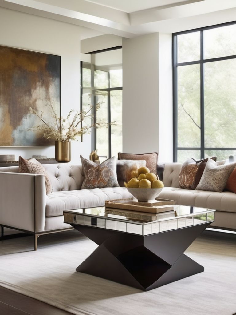 Update your living room with the illusion of spaciousness by incorporating mirrored surfaces. Consider adding a mirrored coffee table, wall-mounted mirrors, and mirrored accent pieces to visually expand the room. Combine with light and airy textures, such as sheer curtains and pale furniture, to enhance the reflective effect. Create a bright and open atmosphere while adding a touch of glamour to your living space with this sophisticated design choice.