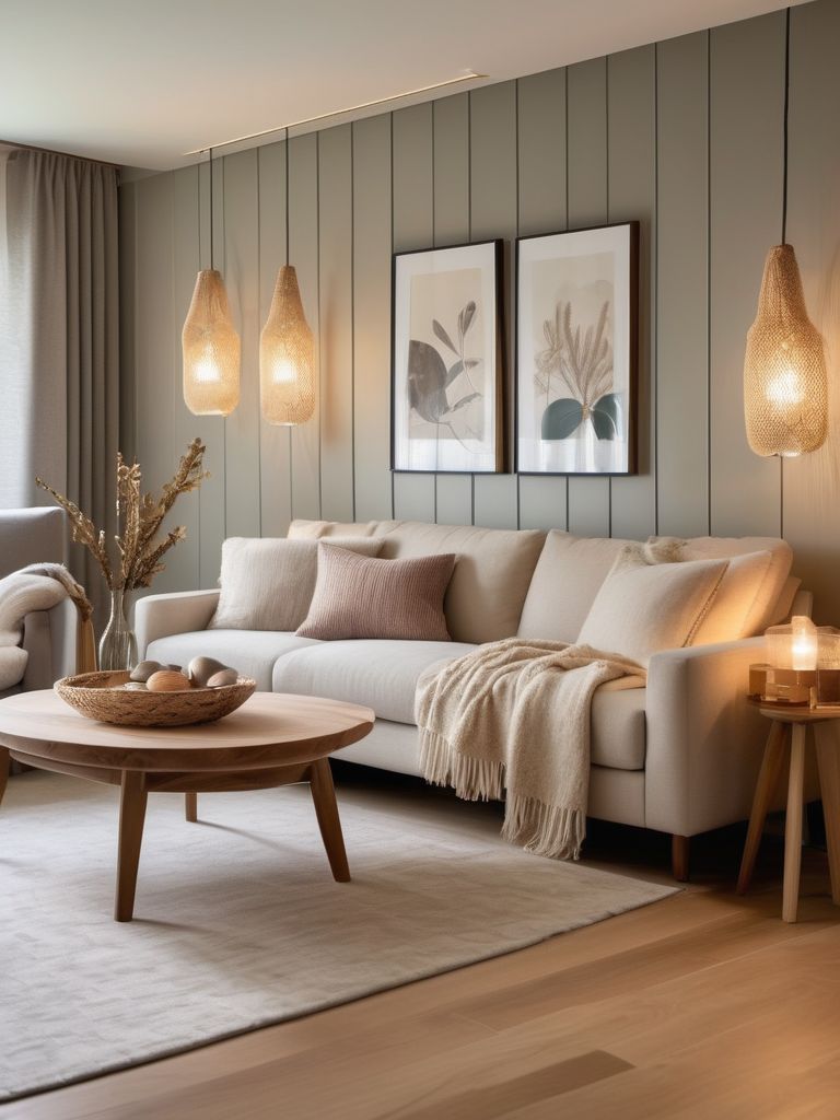 Warm, dimmable lighting fixtures, Soft, textured throws, Ambient lighting, Cozy seating areas, Relaxing ambianceDescription