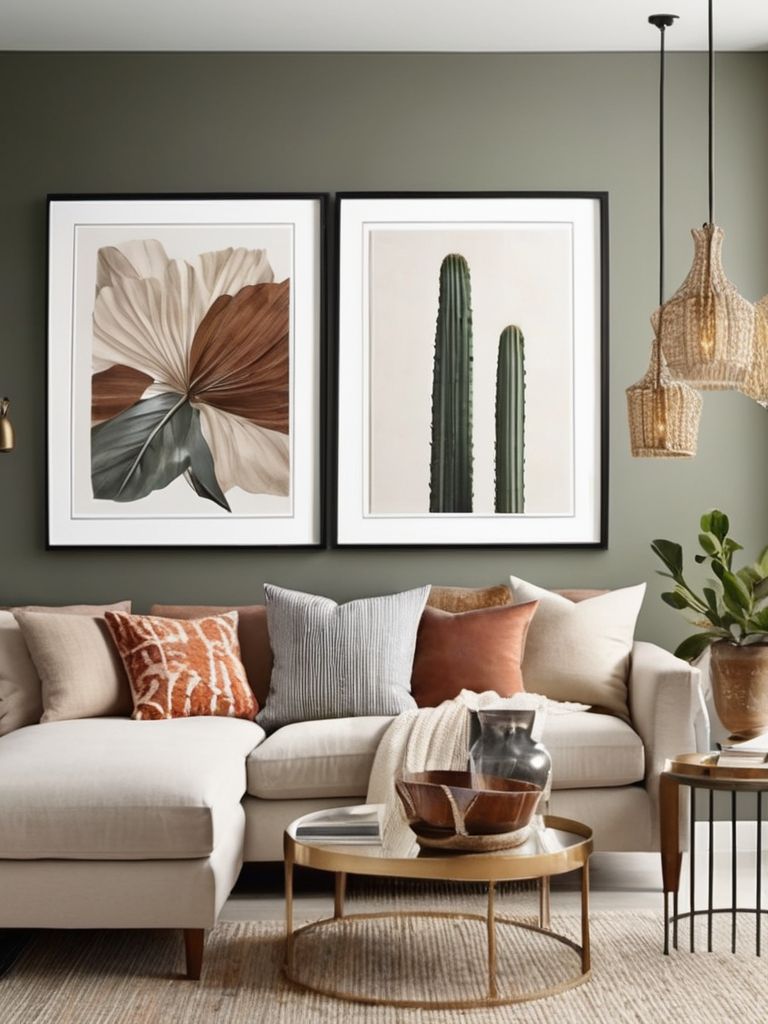 Revamp your living room with a stunning gallery wall that reflects your unique style. Mix and match frames in different sizes and materials to create a dynamic display of your favorite artwork, photographs, and mementos. Play with various layout options to achieve a balanced and visually engaging composition. Whether it’s a symmetrical grid or an eclectic salon-style arrangement, infuse your living space with personality and creativity through this personalized art display.