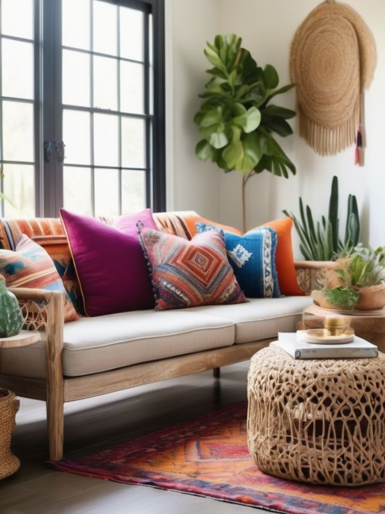 Bring Bohemian Elegance into Your Living Room with Eclectic Patterns, Vibrant Colors, and Free-Spirited Decor