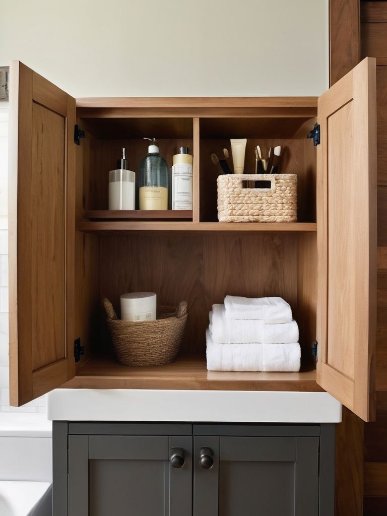 Under-sink storage, Built-in shelving, Recessed wall cabinets, Bathroom organizers, Storage basketsDescription