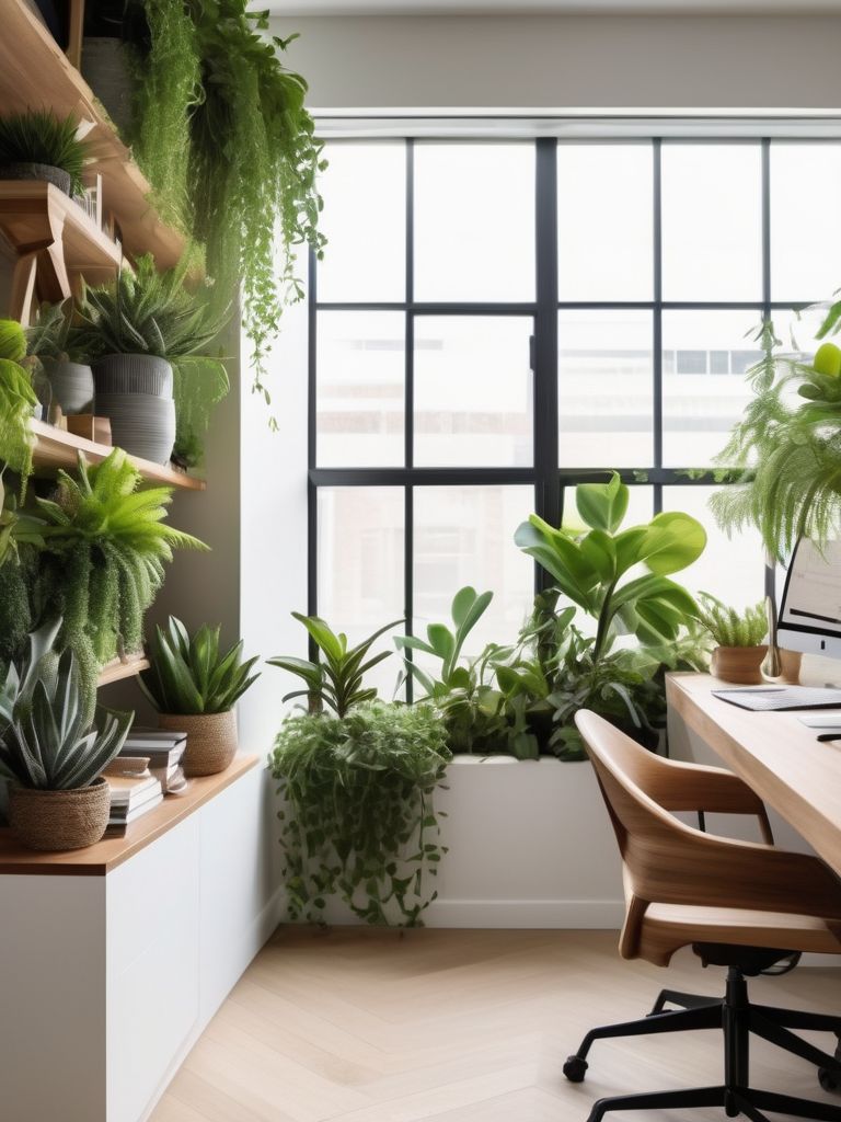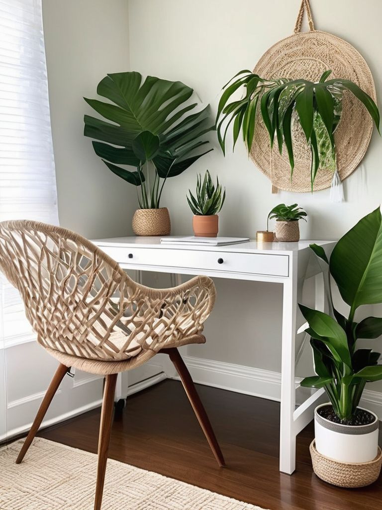 Create a Calming Home Office Oasis with Plant Decor and Biophilic Design