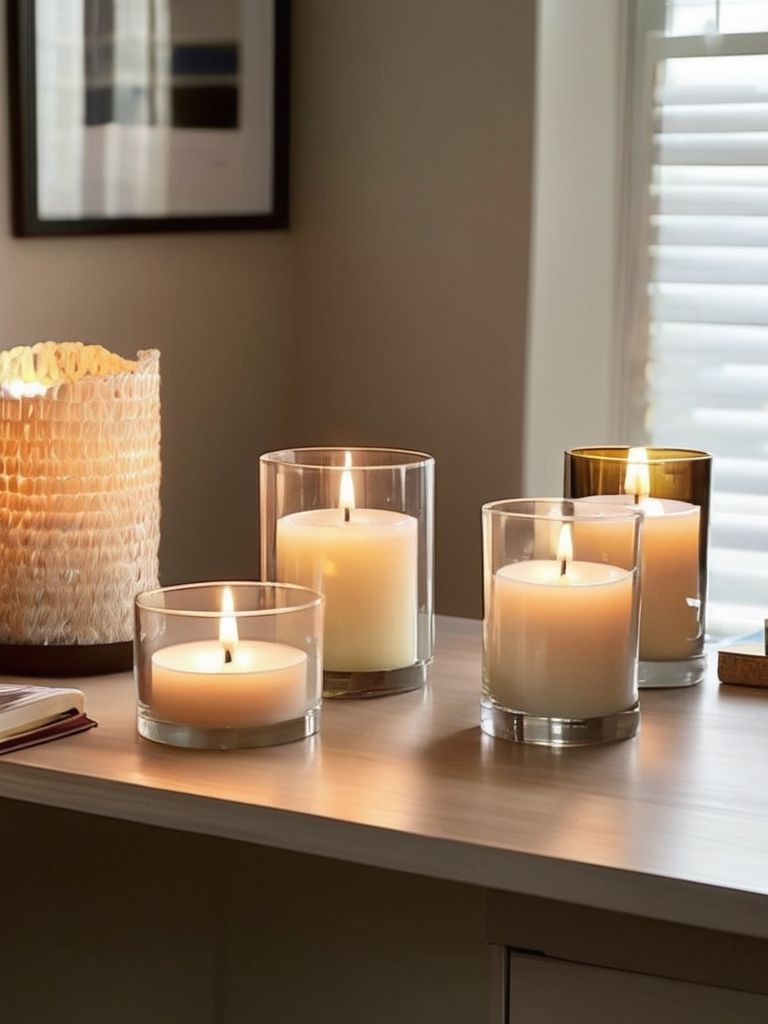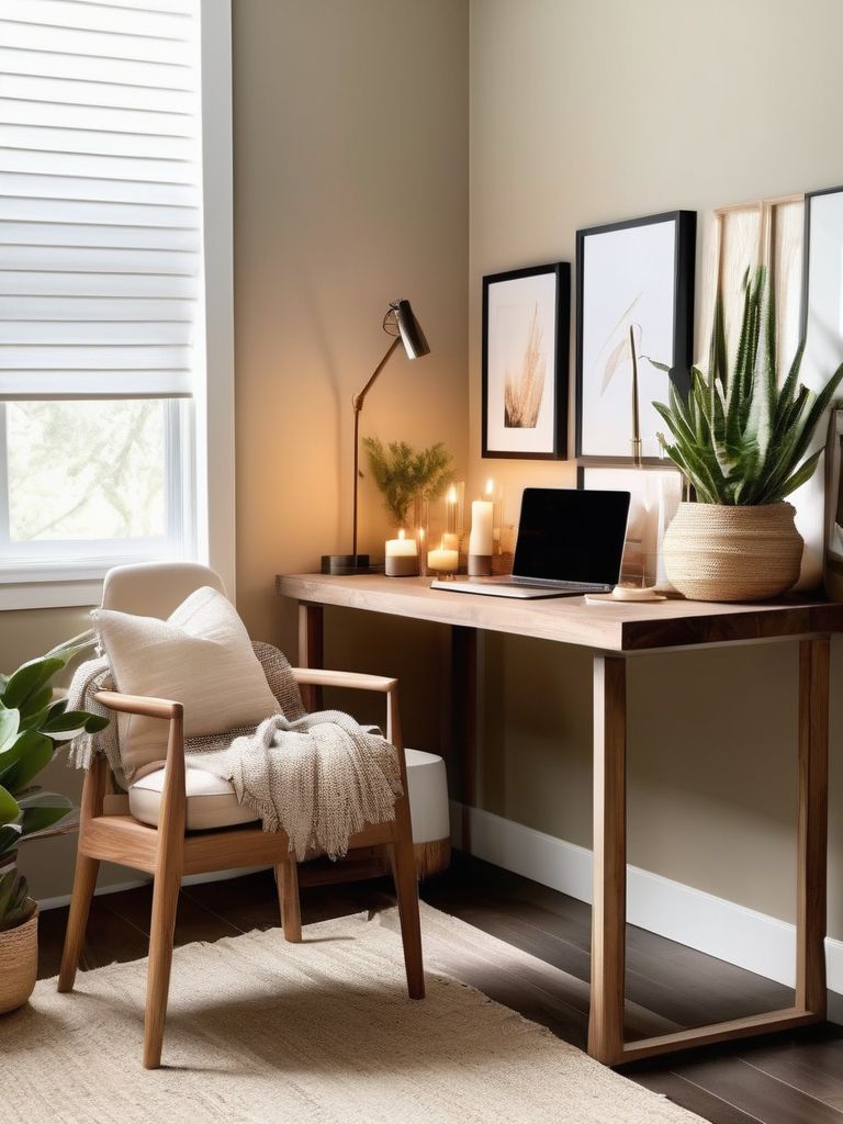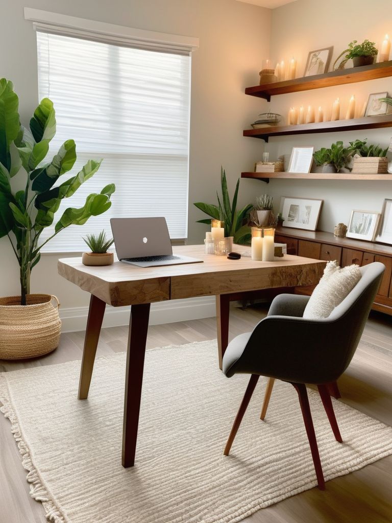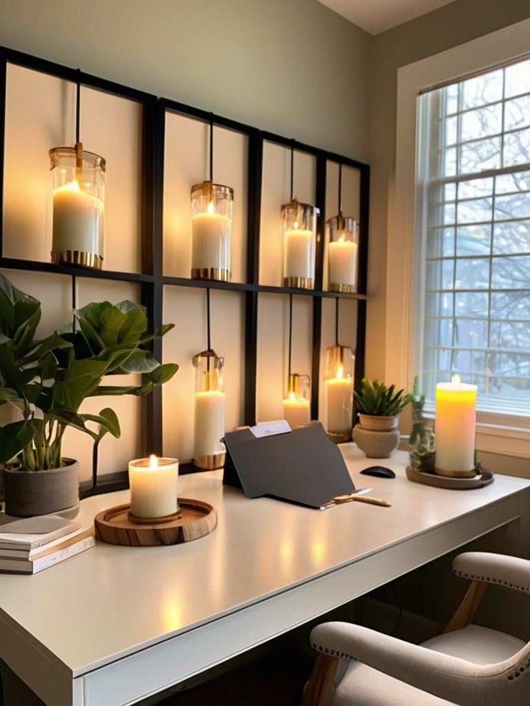 Create a serene and productive home office space by optimizing the ambiance with soft, dimmable lighting and the soothing aroma of scented candles. Accentuate the calming atmosphere with inviting textures and comfortable seating, encouraging relaxation and focus. Incorporate natural elements and minimalist decor to infuse tranquility into the interior design, promoting a stress-free work environment.