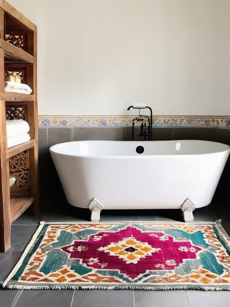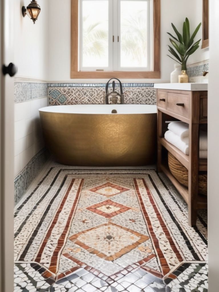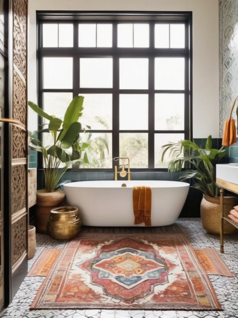 Transform your bathroom into a bohemian paradise with Moroccan tiles, ornate lanterns, and colorful rugs. Embrace the exotic allure of a Moroccan-inspired design by incorporating intricate tile patterns, vibrant textiles, and lush greenery. Add a touch of elegance with brass fixtures and mirrors to create an inviting and luxurious sanctuary. Elevate your bathroom with a fusion of cultural elements that exude warmth, visual interest, and a sense of wanderlust.