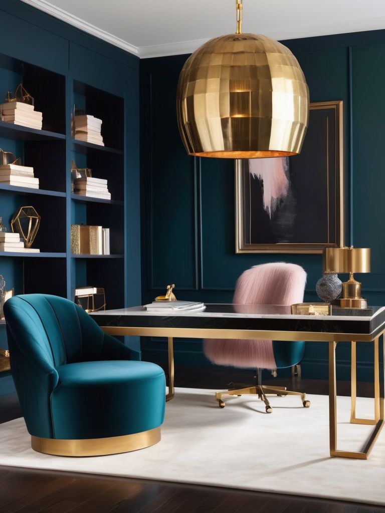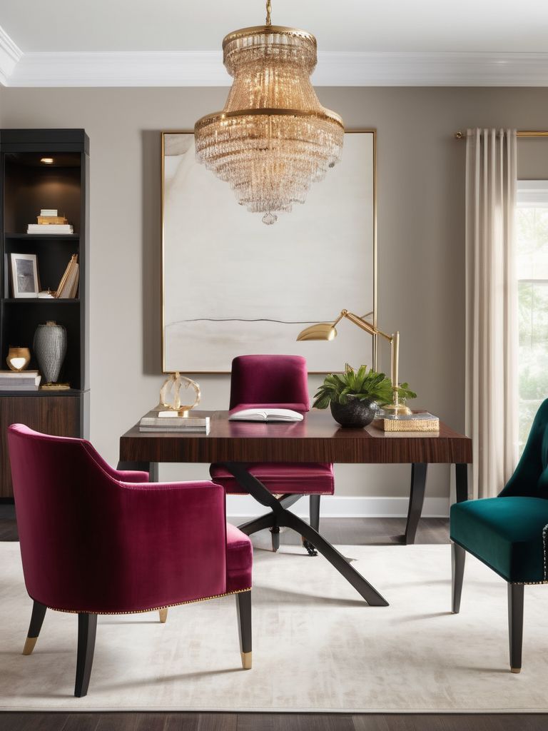 Bring Luxury to Your Home Office: Elevate Your Space with Velvet Accents and Statement Lighting