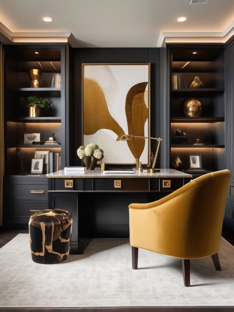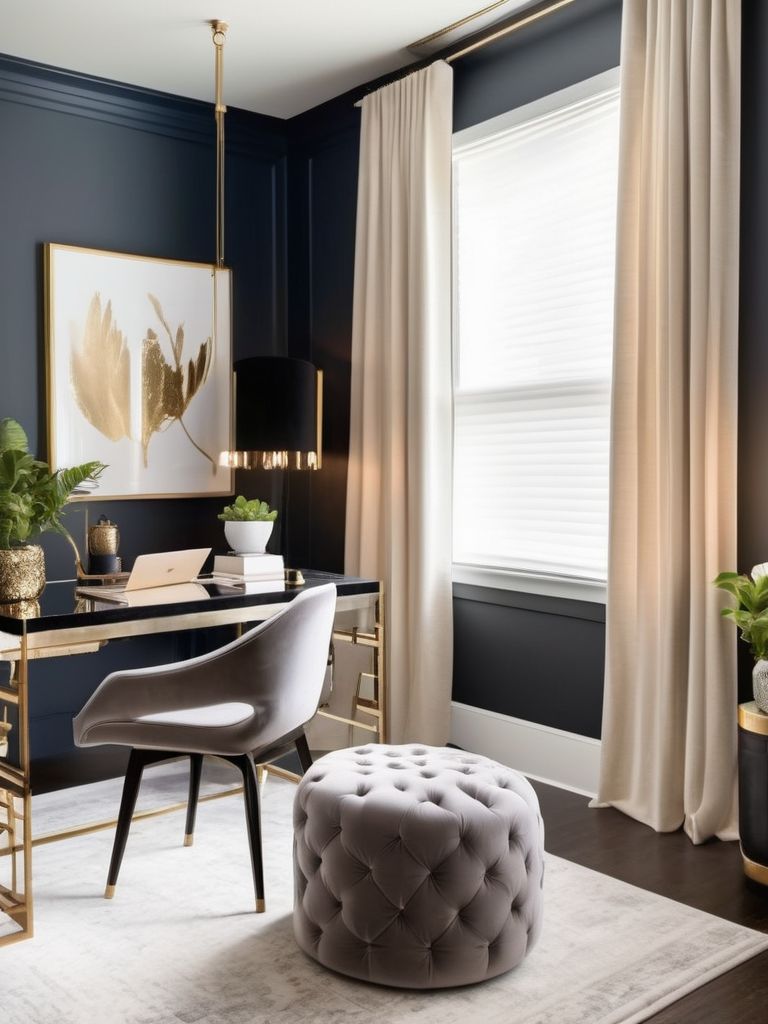 When transforming your home office, consider adding luxury with velvet accents and statement lighting. Velvet adds a touch of opulence and warmth, perfect for a professional yet comfortable vibe. Pairing it with statement lighting can elevate the ambiance and create a stylish, productive atmosphere. Whether it's a velvet chair or curtains, combined with a standout chandelier or a sleek desk lamp, these elements can bring a sophisticated feel to your work space.