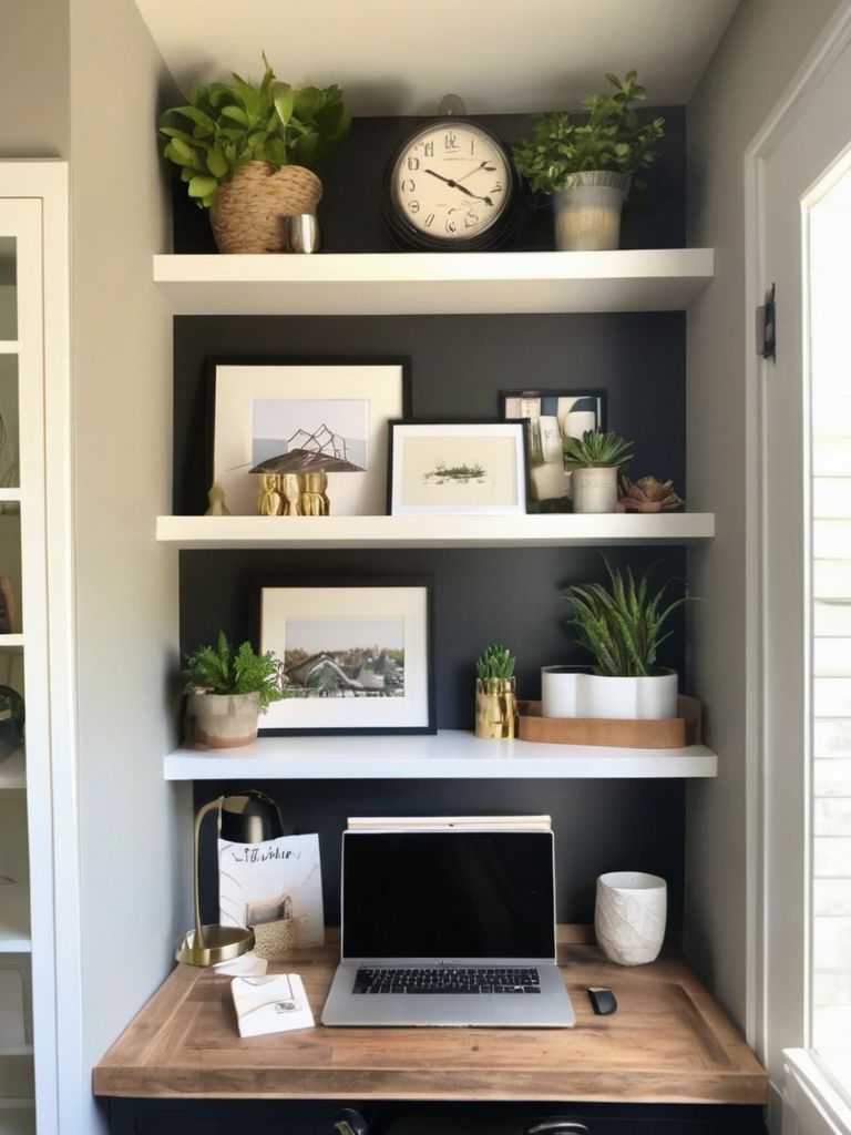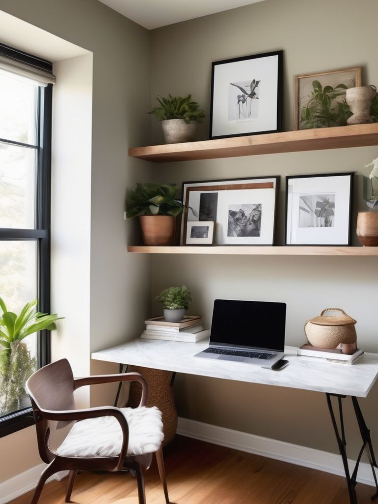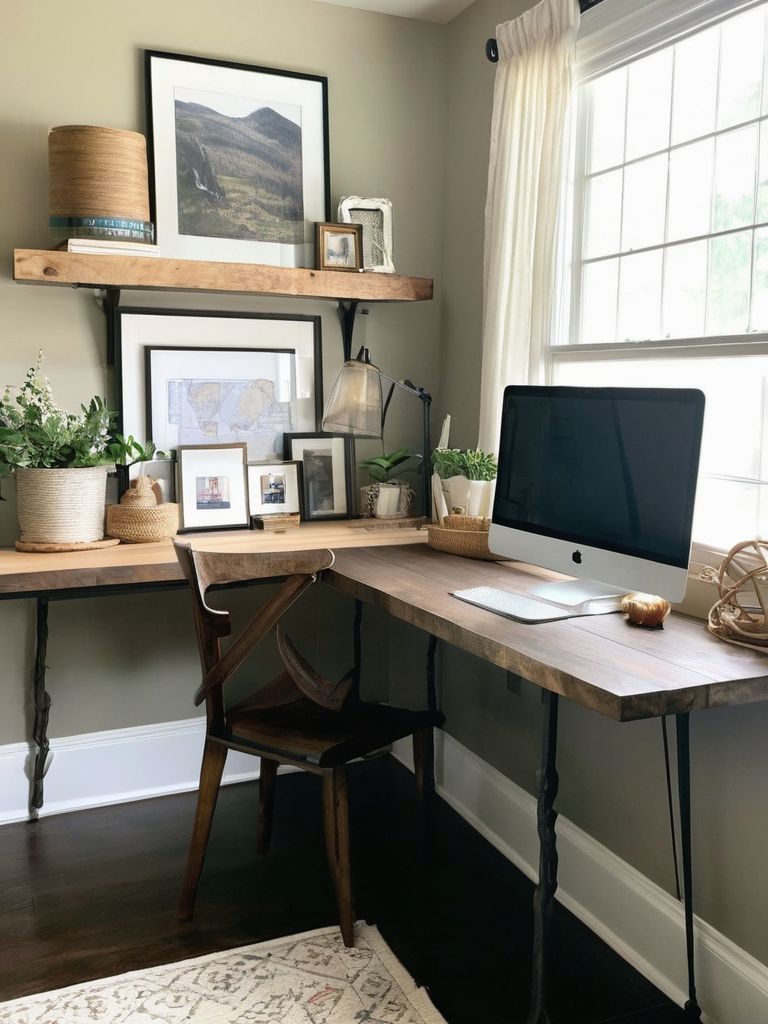 Create a personalized home office retreat with the addition of a vibrant gallery wall and cherished memorabilia. Curate a collection of artwork, photographs, and mementos that reflect your unique personality and interests. Utilize various frame styles and sizes for an eclectic and visually engaging display. Incorporate specialized lighting to highlight specific pieces and create a cozy and inspiring atmosphere.