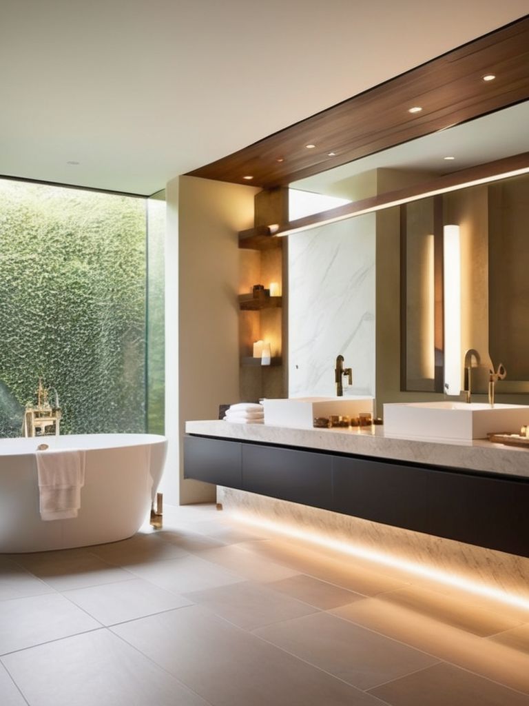 Create a tranquil bathroom retreat with a focus on luxury soaking tubs and aromatherapy. Incorporate sleek and modern freestanding tubs, complete with built-in aromatherapy features for a spa-like experience. Embrace a serene color palette, plush towels, and natural light to create a calming ambiance. Consider adding essential oil diffusers and scented candles to enhance the overall relaxation. Elevate the space with elegant finishes and fixtures for a truly indulgent bathing experience.
