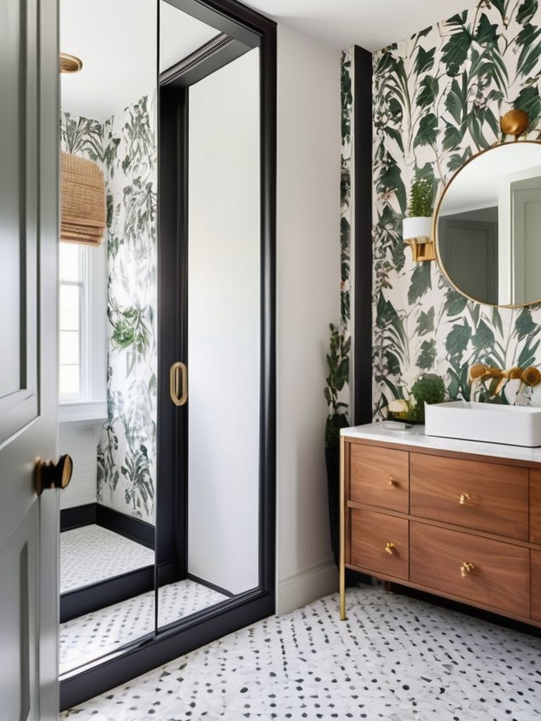 Transform Your Bathroom into a Bold, Daring Oasis with Statement Wallpaper and Striking Mirrors