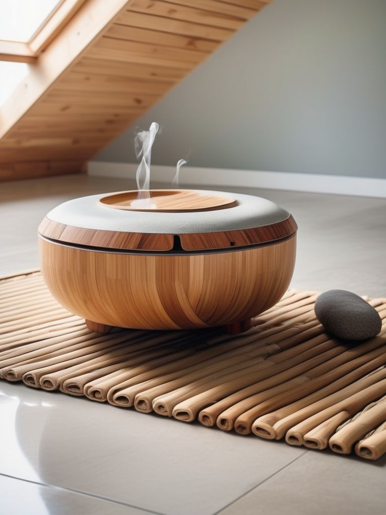 Bamboo mats, Floor cushions, Soft lighting, Indoor plants, Water featuresDescription