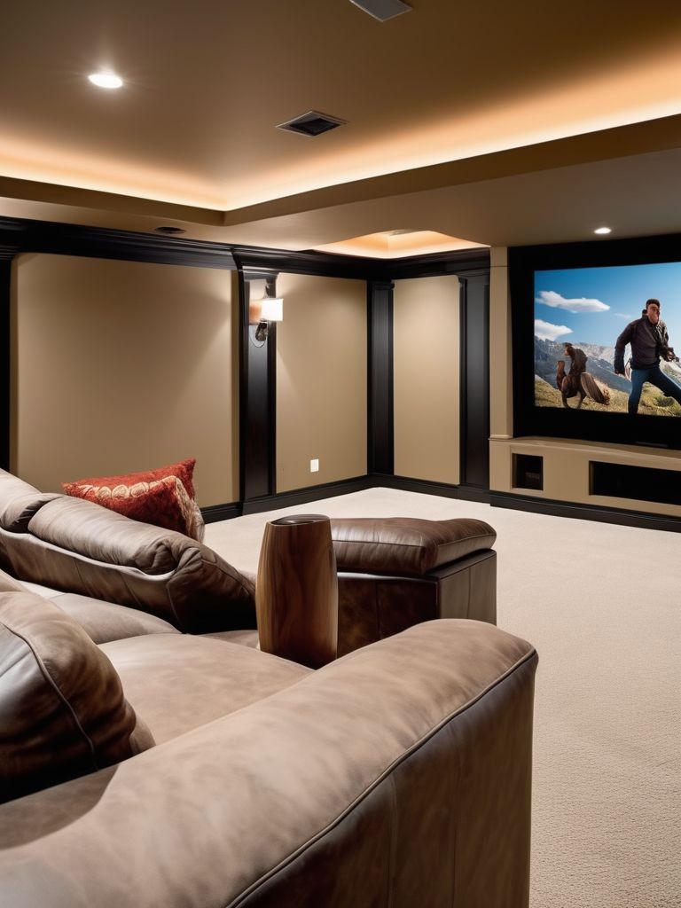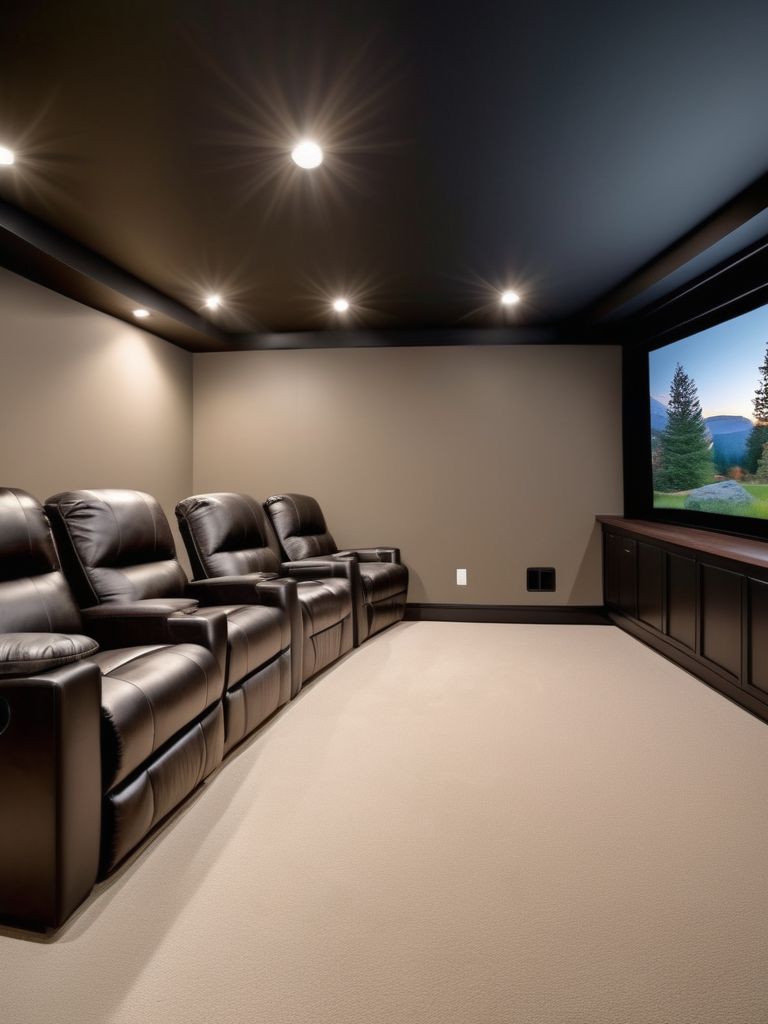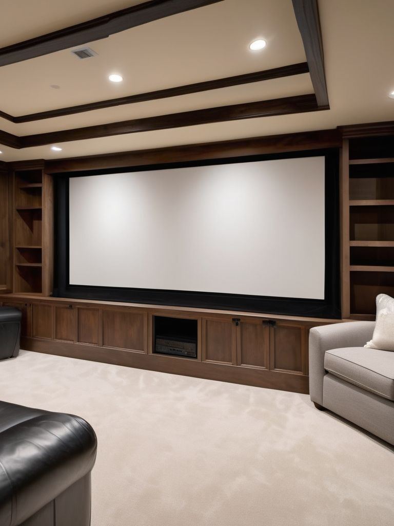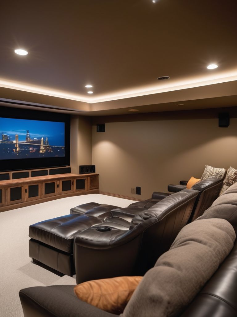 Soft, comfortable seating options, High-quality projector screen, Sound-absorbing materials, Dimmable lighting, Smart technologyDescription