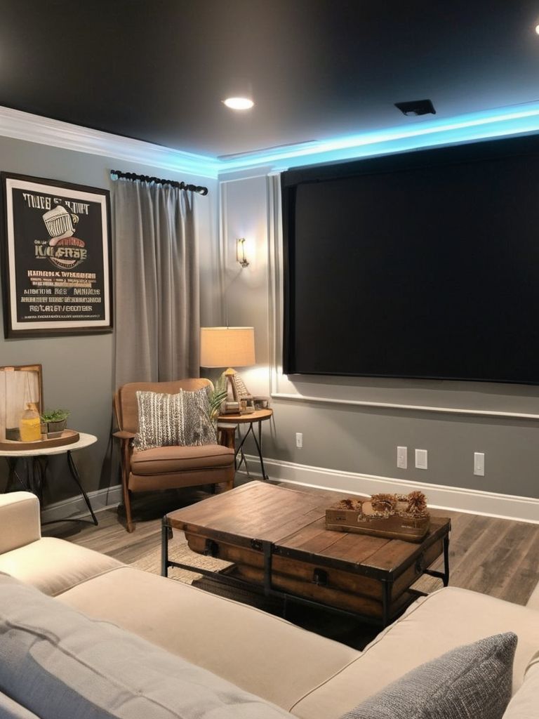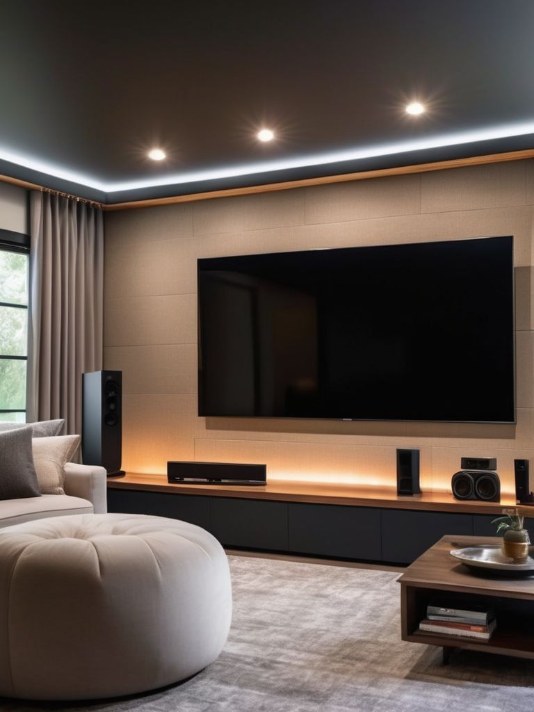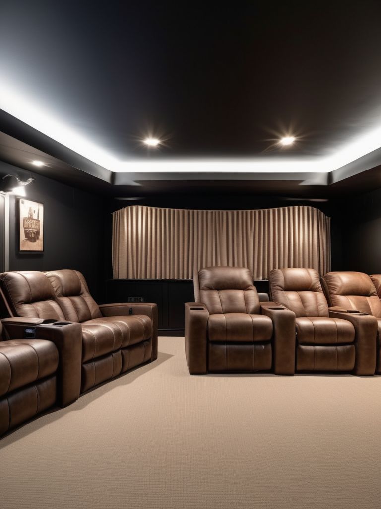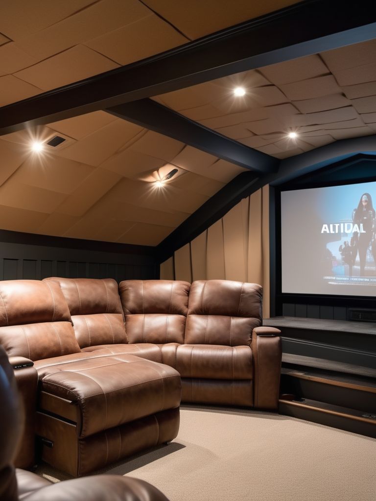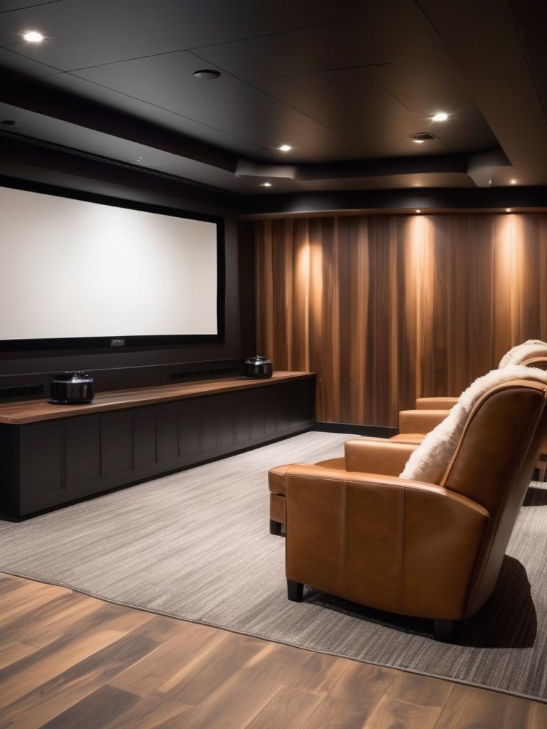 Projector, Surround sound system, Soundproofing materials, Comfortable seating options, Mood lightingDescription